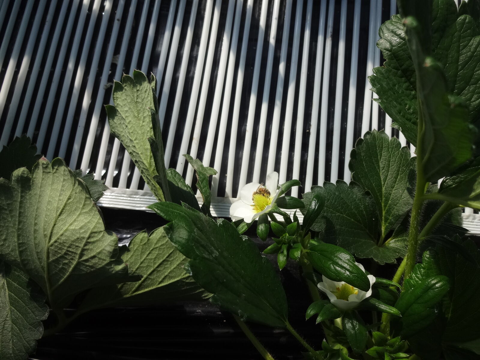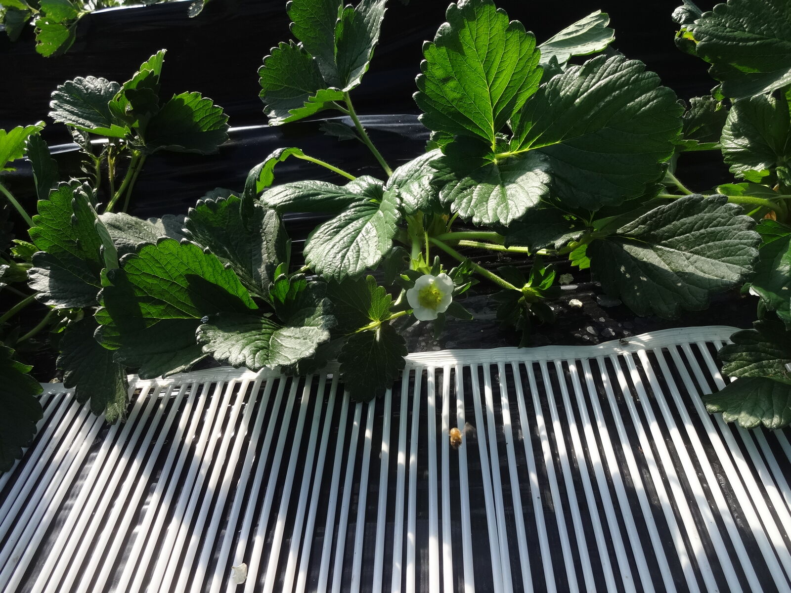 もうかなり気温は下がってきていると思うのですが、もっとも気温が上がる昼頃には暴れてしまうので、巣箱上空のビニール開放が欠かせません。でも、あんまり涼しくしてしまうとイチゴが休眠に向かってしまうので、温度管理が難しいところです。