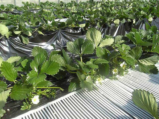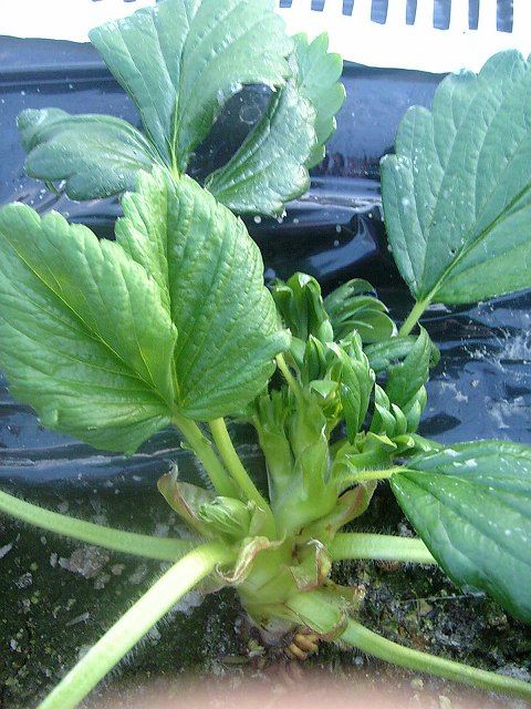 右側が正常な株。花が上がっている横に2番果房の芽があって葉っぱが展開しています。左側の写真には、花の横に2番果房の芽がありません。2番が無いということは、3番も4番も5番も無いということで、それに葉っぱがもう無いので1番の果実もほとんど取れない。つまりほぼ全滅ということ。これを「芽無し株」といいます。章姫で問題となる特徴です。