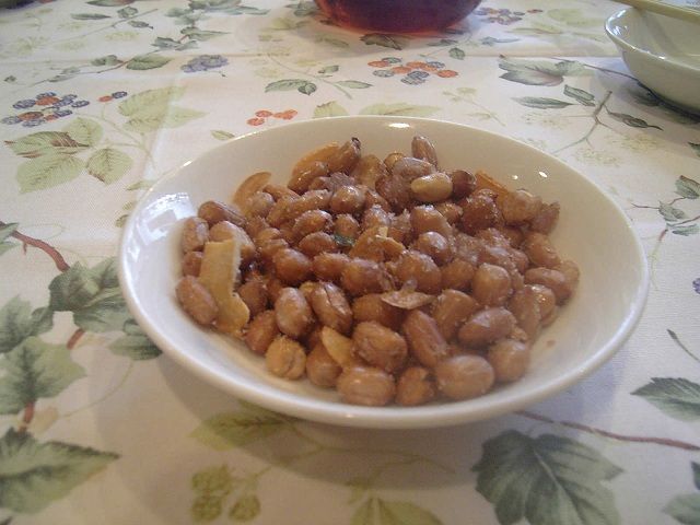 これは小粋な付け出し、ピーナッツとスライスガーリックを揚げ、塩がナイスにふりかかってます。うちの子どもたちは、「ま~やさんに行くんなら絶対あれ買ってきて!」と、大ファン!!・・・・・やみつき間違いなし。