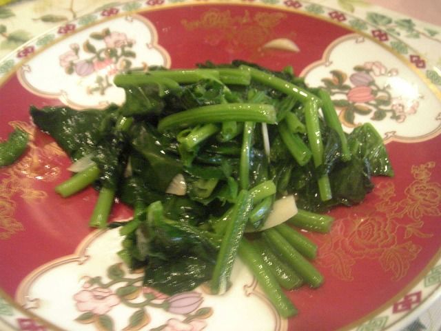 スライスガーリックと塩味かな?でサッと炒めたそうです。でも、こんなにスゴい五つ星ほうれん草料理は初めてです!みんな結構お腹一杯とか言ってたのに競い合って食べてました。(^_^)ただ、旬の食材に合わせてメニューは変わるので、この味は年中出会える訳では無いんですねえ。(おかしらのほうれん草です。)