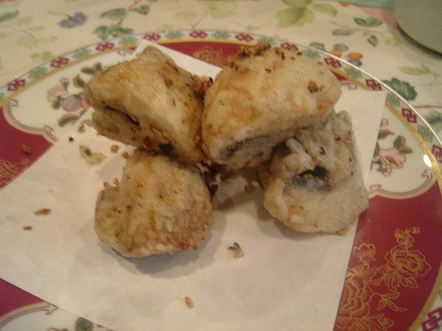 嗚呼、幸せ。こんなデカいマッシュルームがなんかとっても贅沢な味で仕上がってました。世界一の味。スパイス、ニンニクチップかなあ?どう説明したら良いかわからないけど、どこにも出せないぞ、こんな美味しい味。これも、摩亜爺さんがこのマッシュルームが手に入った時だけしか出来ないでしょうから、事前に予約相談などしてどうぞ。