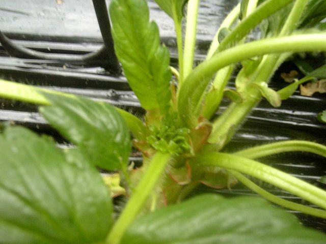 まだまだごくわずかですが、2番果房の蕾が覗き始めました。おそらくここ1週間ぐらいで続々と出蕾すると思われます。2番の葉数はだいたい5枚です。毎年の目標は、2番の葉っぱを5枚展開させて11/20に出蕾させることなんですが、いつもうまくいきません。