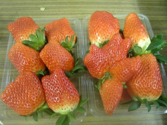 今年は四角っぽいイチゴがいつもより若干多いような気がします。どうしてなんでしょうね。さっぱりわからない。実におもしろい。