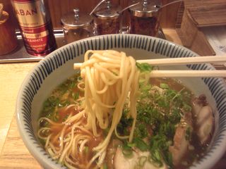 有無をいわせぬ完璧な平打ち細麺。ひとくちすすると、恍惚感で満たされる。余分なものを感じない、あっさりと上品に、しかししっかりとからむスープがうまい。食べ進むうちに、高まってくる絶頂感と、麺が無くなっていく悲しさが胸を打つ。