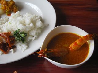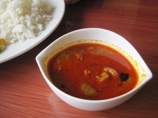 スープカレーですね。本場スリランカのものより、ずーっと辛さを抑えてあるそうです。