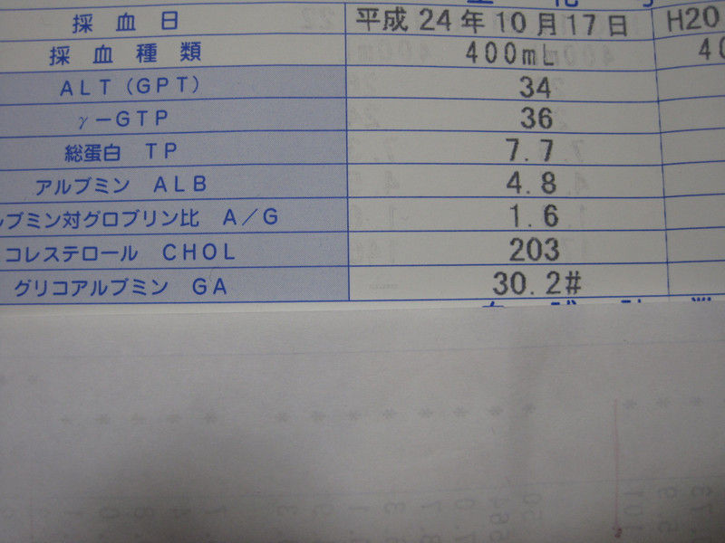 10月25日の記事に書いた、献血の際にしてもらった血液検査の中の「脳天ブチ抜かれそうな数値」というのはこれです。