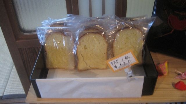 1日に1回しか焼けないので、この食パン焼き上がり後40分で売り切れてしまうこともあるそうです。この日はたまたま大雨だったので、残っていたらしい。