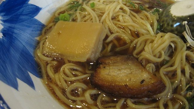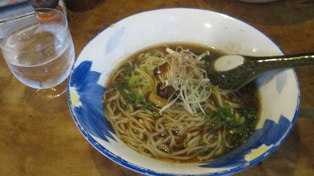 醤油ベースの中華そば。一番上に乗っかっているのは、えのき茸の干物。