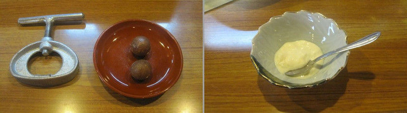 今日の副菜は、同じくマカダミアナッツとポーポーという果物。