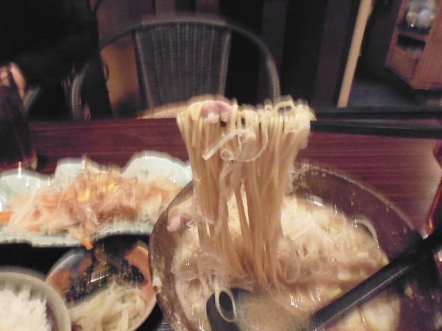 麺は生麺ではなく、乾麺をスープとともに煮込んであるようです。細く硬く、実に好ましいタイミングで器に上げてあります。熱々で、厳冬期冷え切った体をほっくりと温めてくれます。