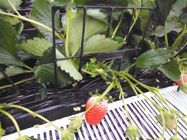 イチゴ果実の上空で咲いているのが、2番の花です。