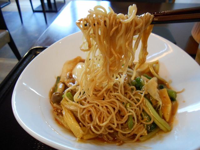 日替わりランチ3種のうちのひとつ、「野菜たっぷりピリ辛あんかけ焼きそば」。