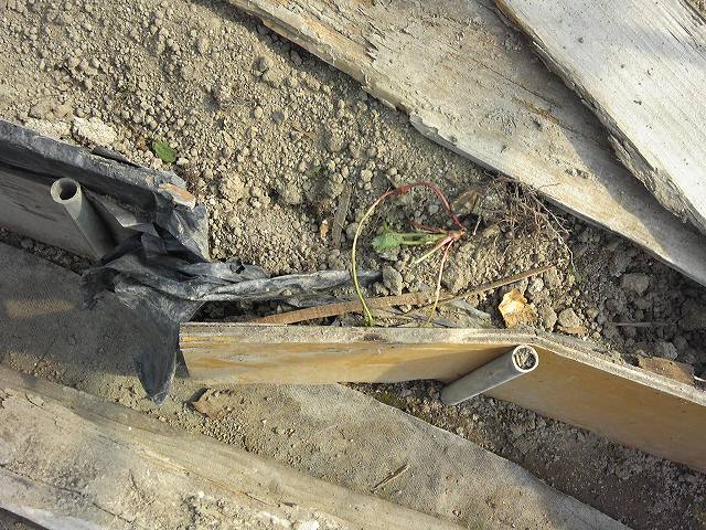 うねは、木の板で両側を垂直に固定してあります。耕す時は、ロータリーをできるだけ板側に寄せながらしかし絶対に板を壊してはいけない。細心の注意でポチを操作します。腕の見せ所です。
