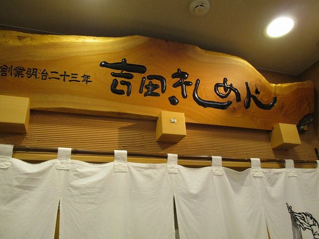 吉田きしめん。名駅エスカ地下街にあります。日曜日とあって、お店の前には行列ができていました。