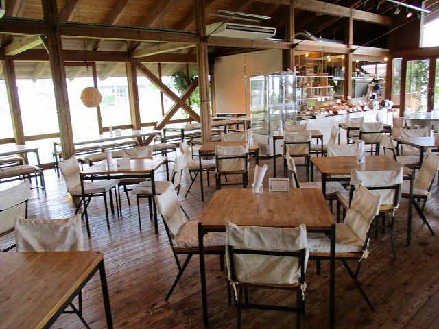 店内は、木を基調にした広々とした空間になっています。