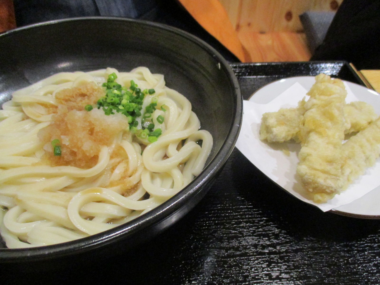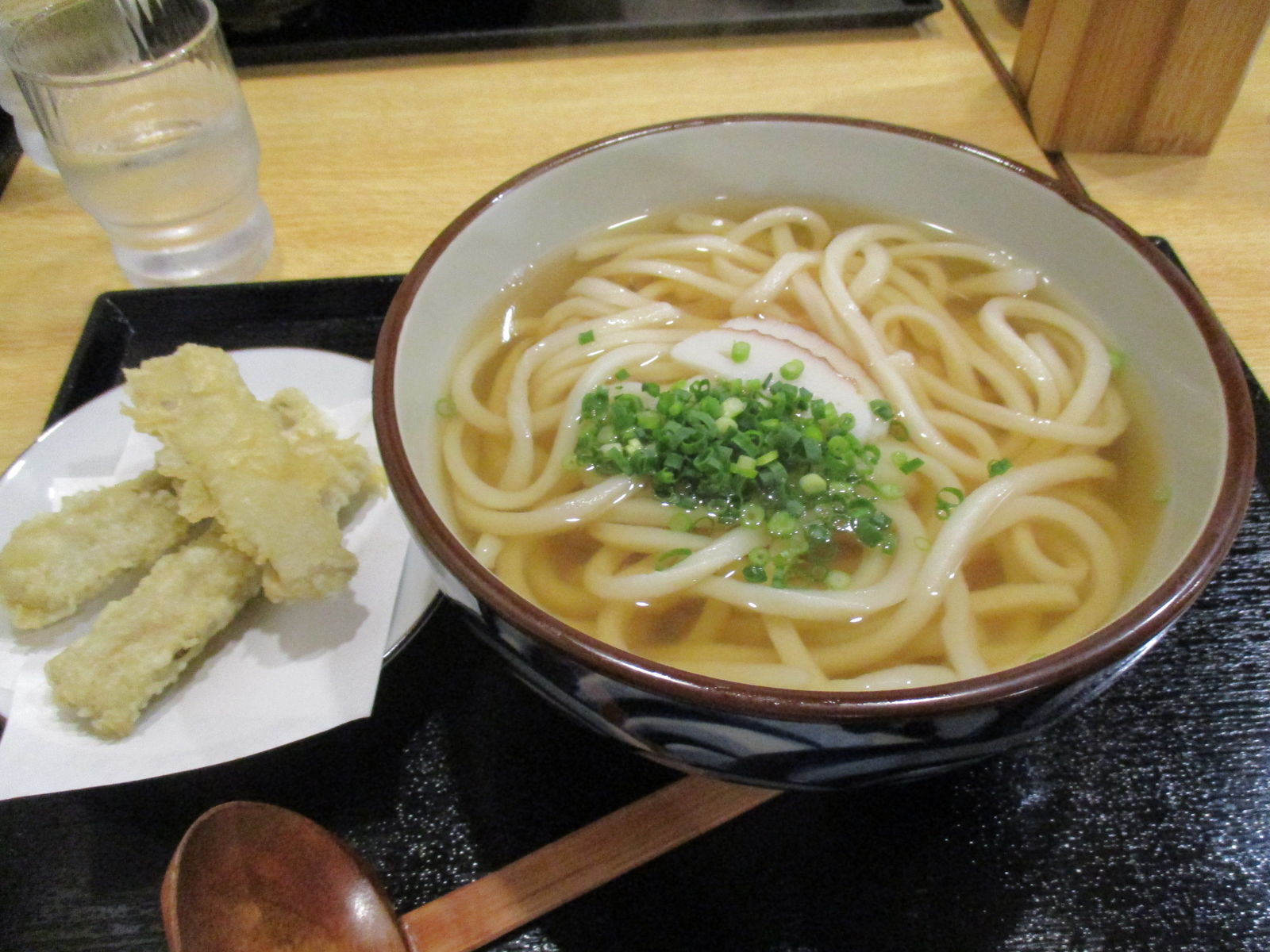 かけうどん大盛りと連島ごぼう天。