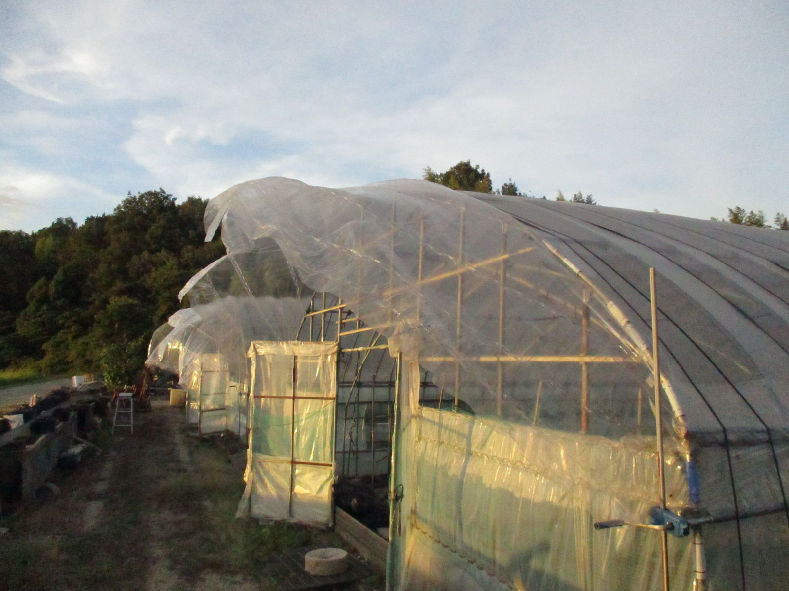 怖いので、イチゴハウスのビニールを剥いで迎え撃つことにしました。