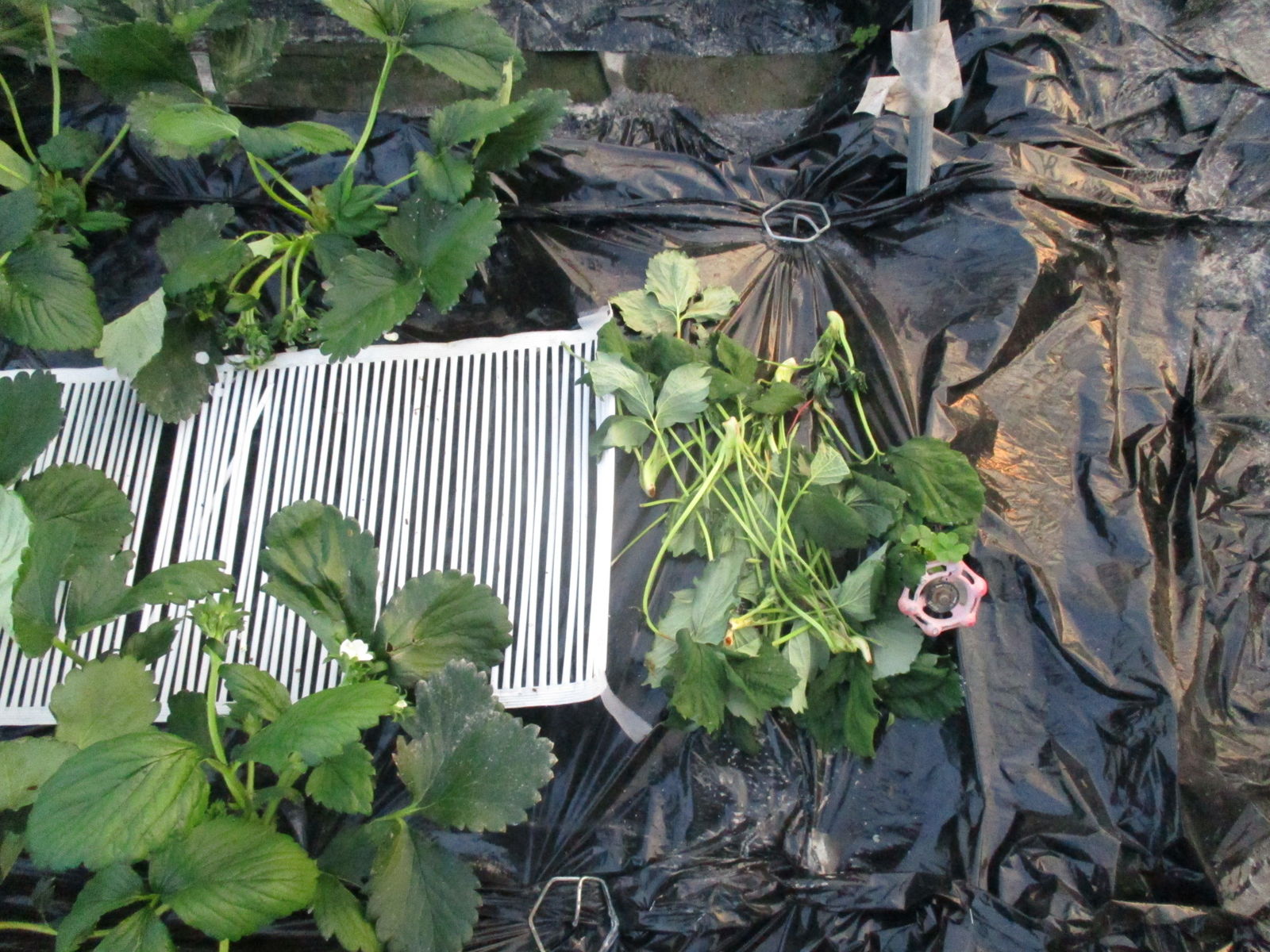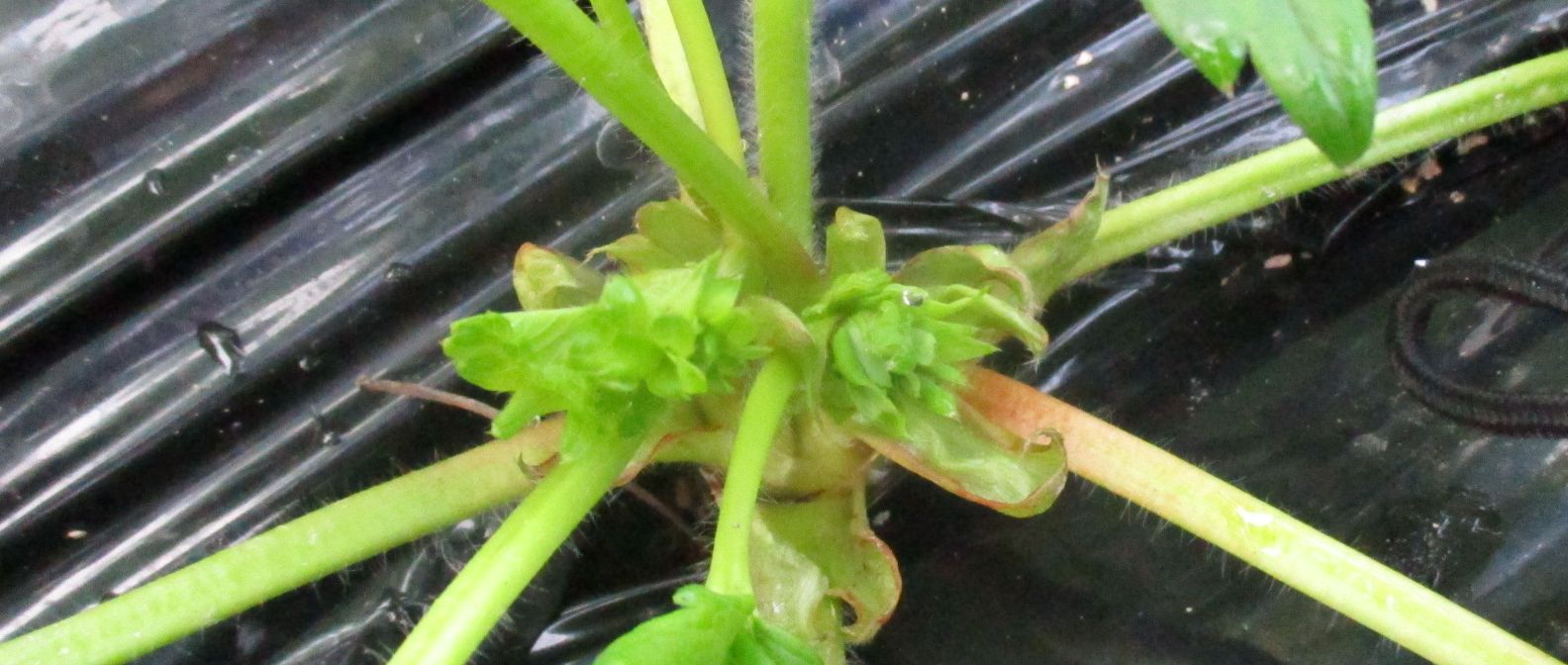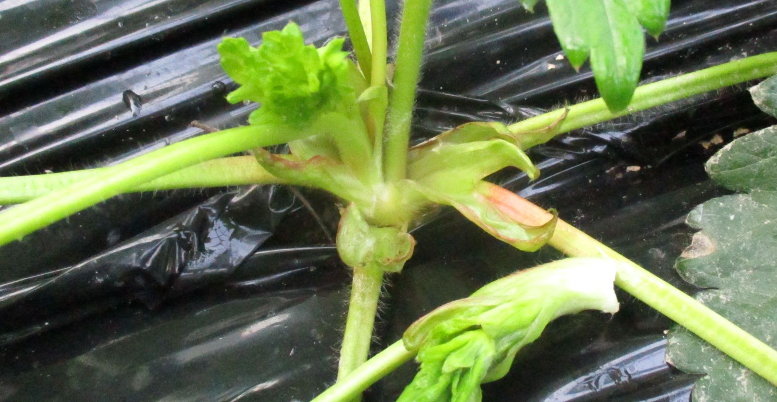 イチゴの作業は、マルチングが終わって芽かぎに移っています。