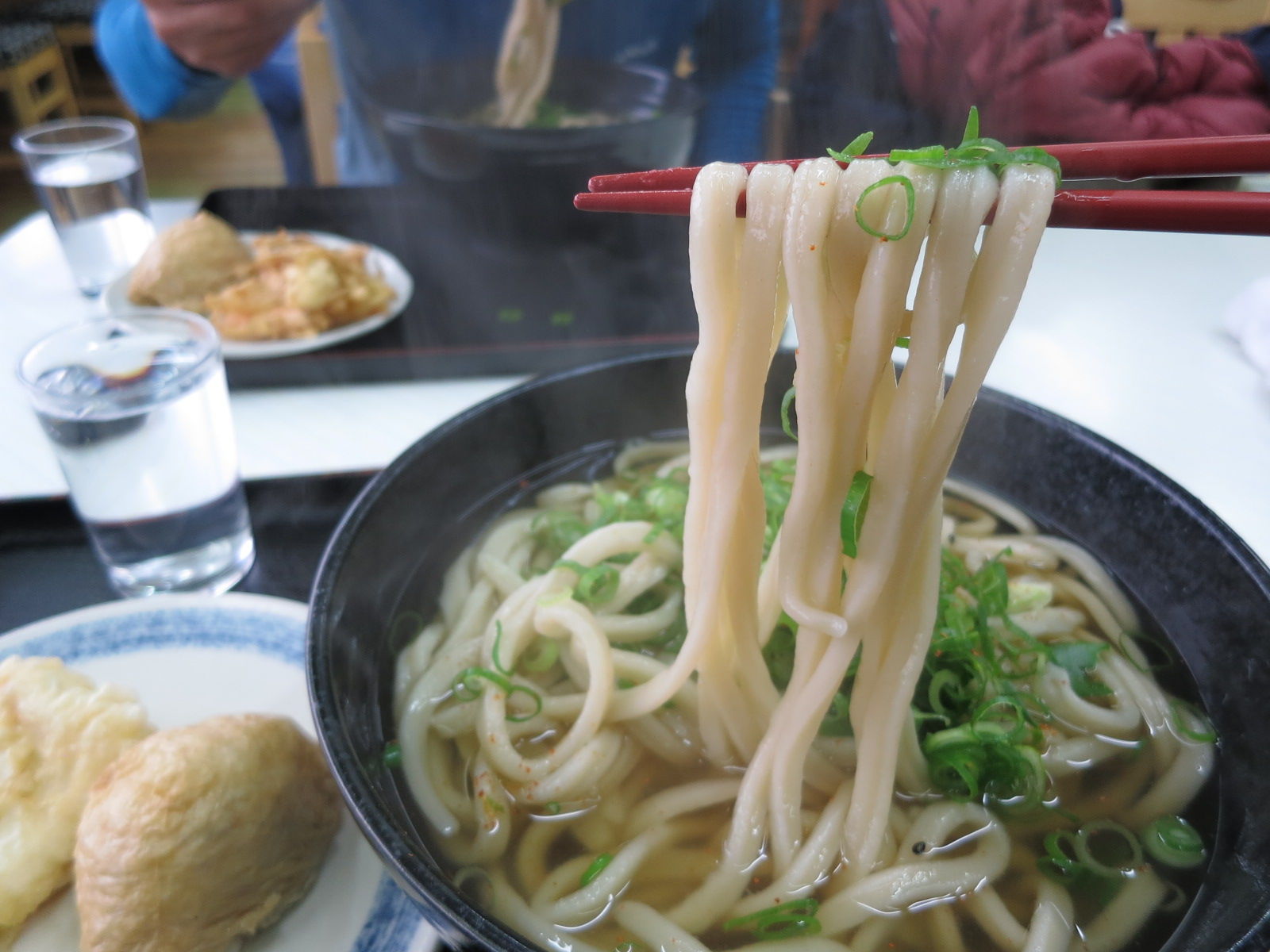 寒空の青空市で冷え切った体を温める極熱山盛りのうどん。