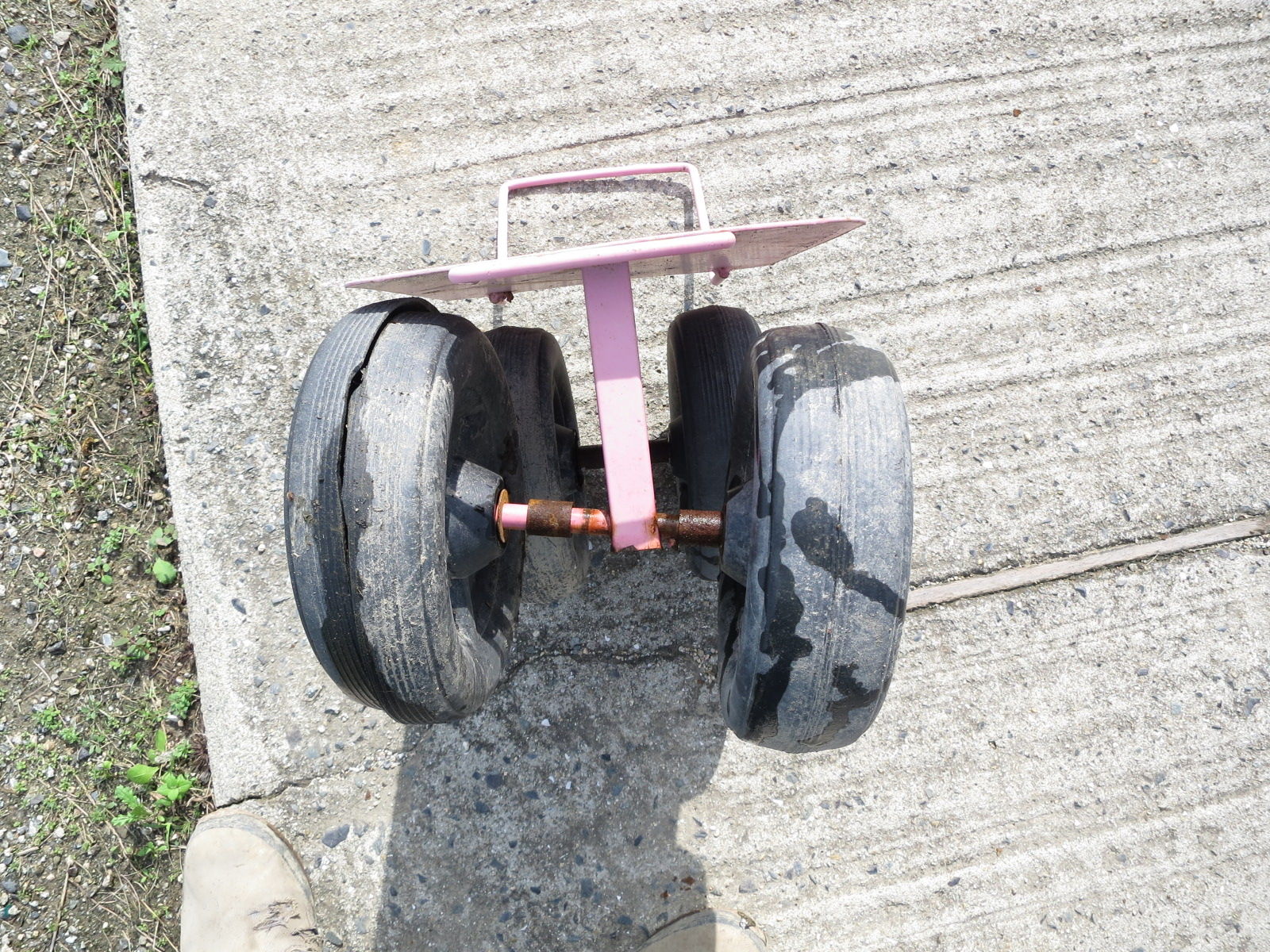 チューブタイヤ装着の頑丈なものです。少々の悪路も、ガンガン進みます。