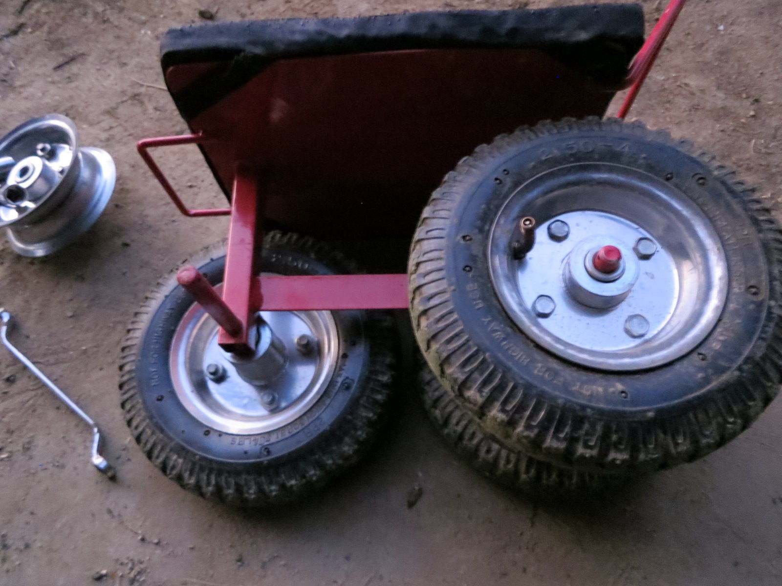2.50-4のタイヤをチューブごと4本交換しようと思うと、¥20000近くかかります。何やってんだかわからなくなります。農業資材店のコロコロ椅子が、10個以上買えます。
