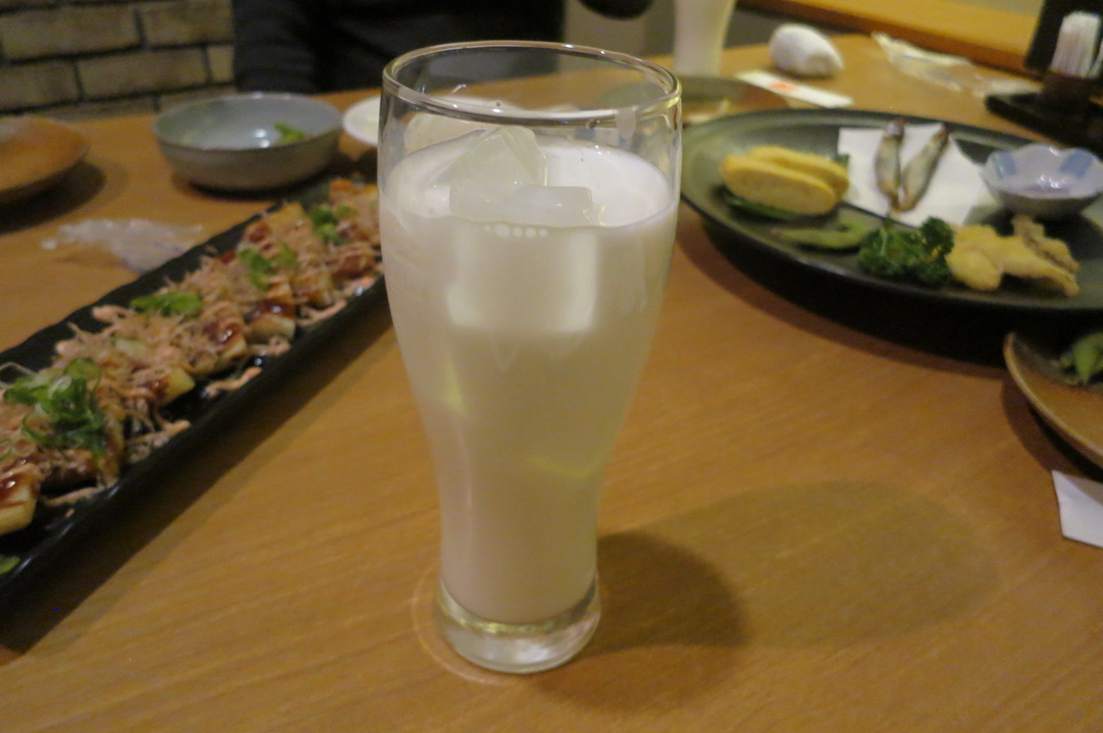 飲み放題付き。岸田先生が、焼酎の牛乳割りがお好きということで、スタッフにわざわざマツモトキヨシまで牛乳を買いに行ってもらい、超レアカクテル。わがままし放題。