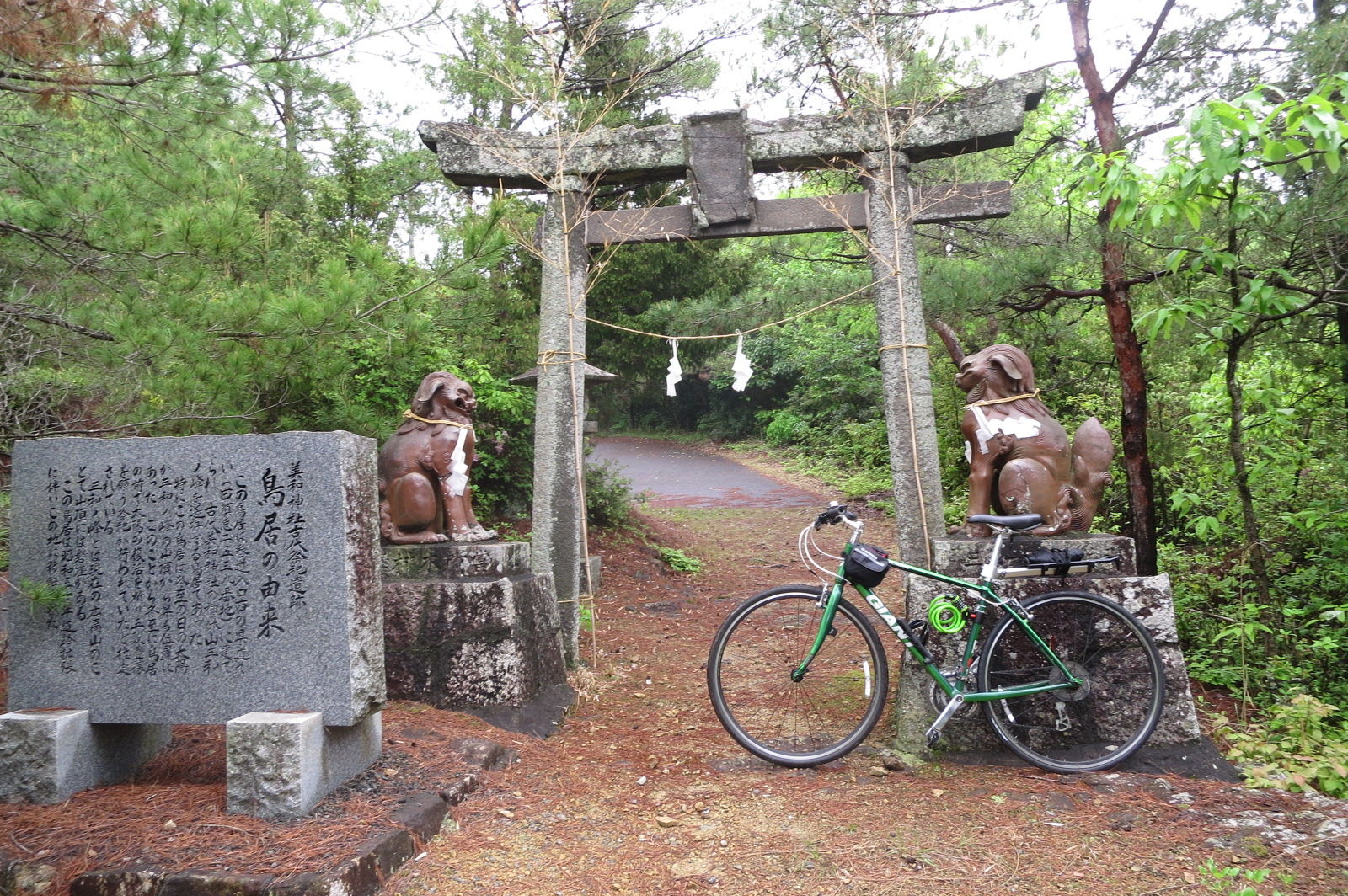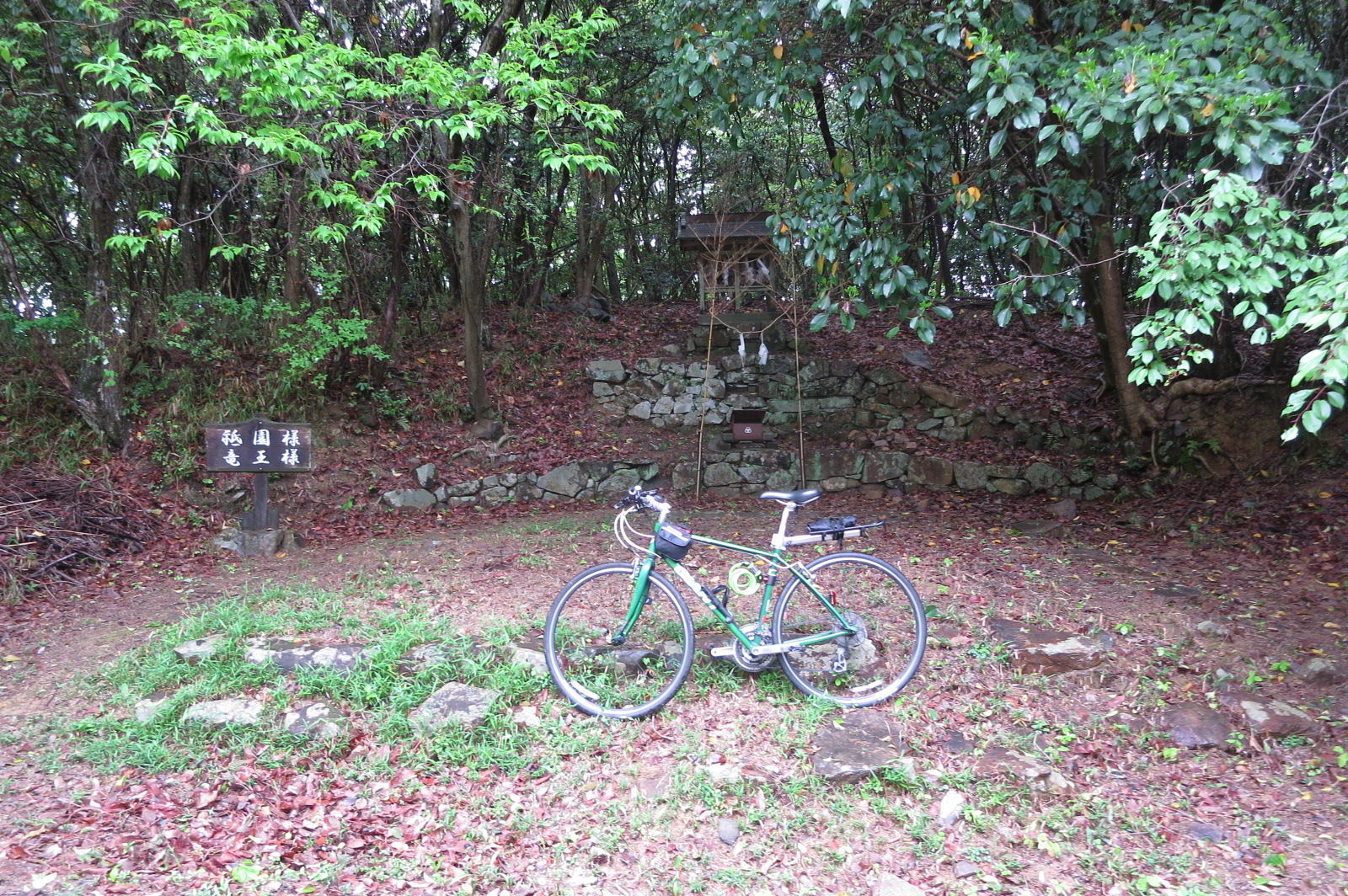 イチゴも最終盤で、もう体力残っていないので、要らぬ見栄や若者意識は捨てて、2×1までギアを軽くして登る。ふーふーと息せき切って、頂上近くの祇園様竜王様。あと少し。