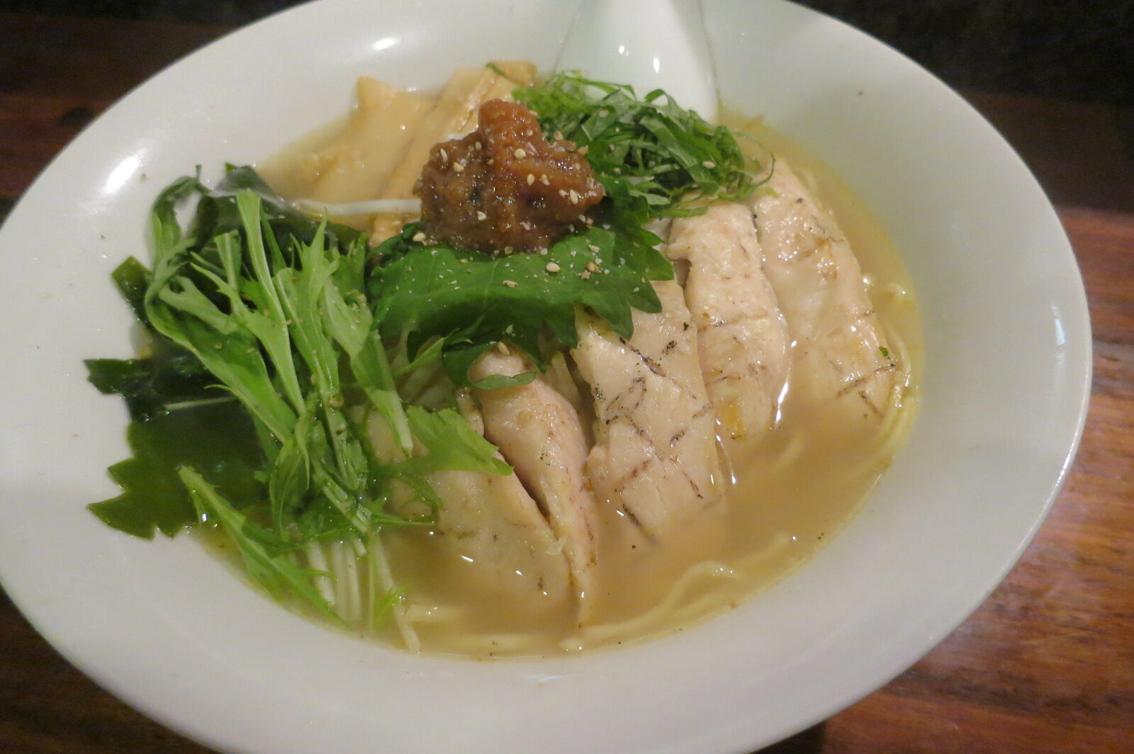 全粒粉とアーモンド練り込みの秀逸麺に、炊き出し鶏スープ、キリリとした醤油に野菜の旨味、化学調味料は使わず脂でアクセントをつけた、心憎いまでの完成度。やるな。