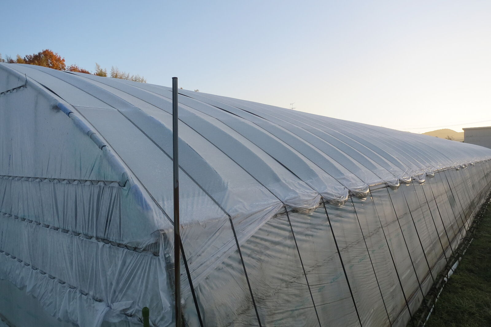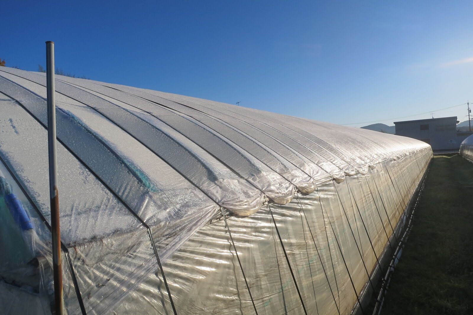 太陽光線で溶けて、ハウスの中にしずくがぼたぼた落ちました。