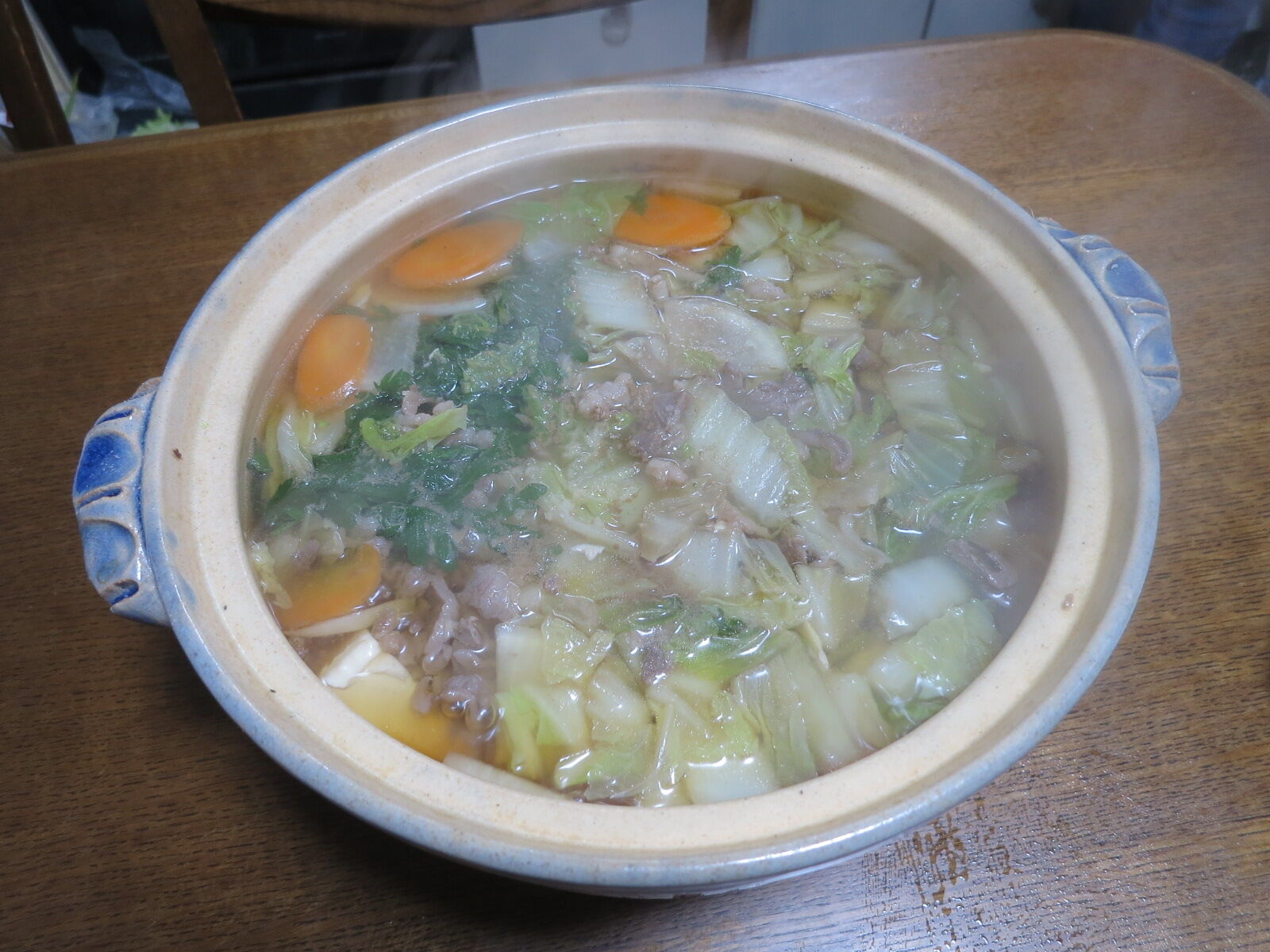 熱い熱い汁と生姜が、冷えた体を温めてくれる。春菊のえぐみが旨い。