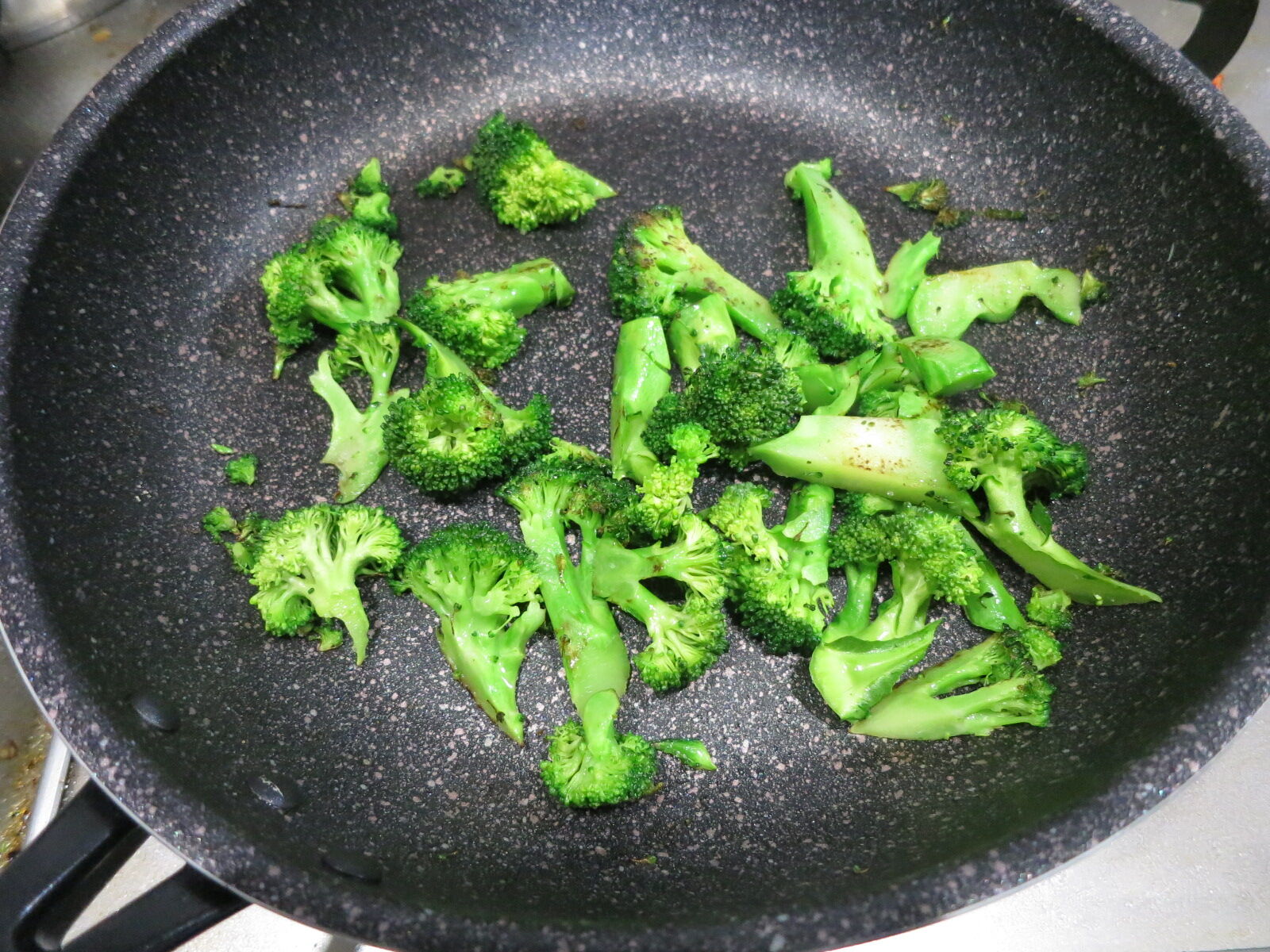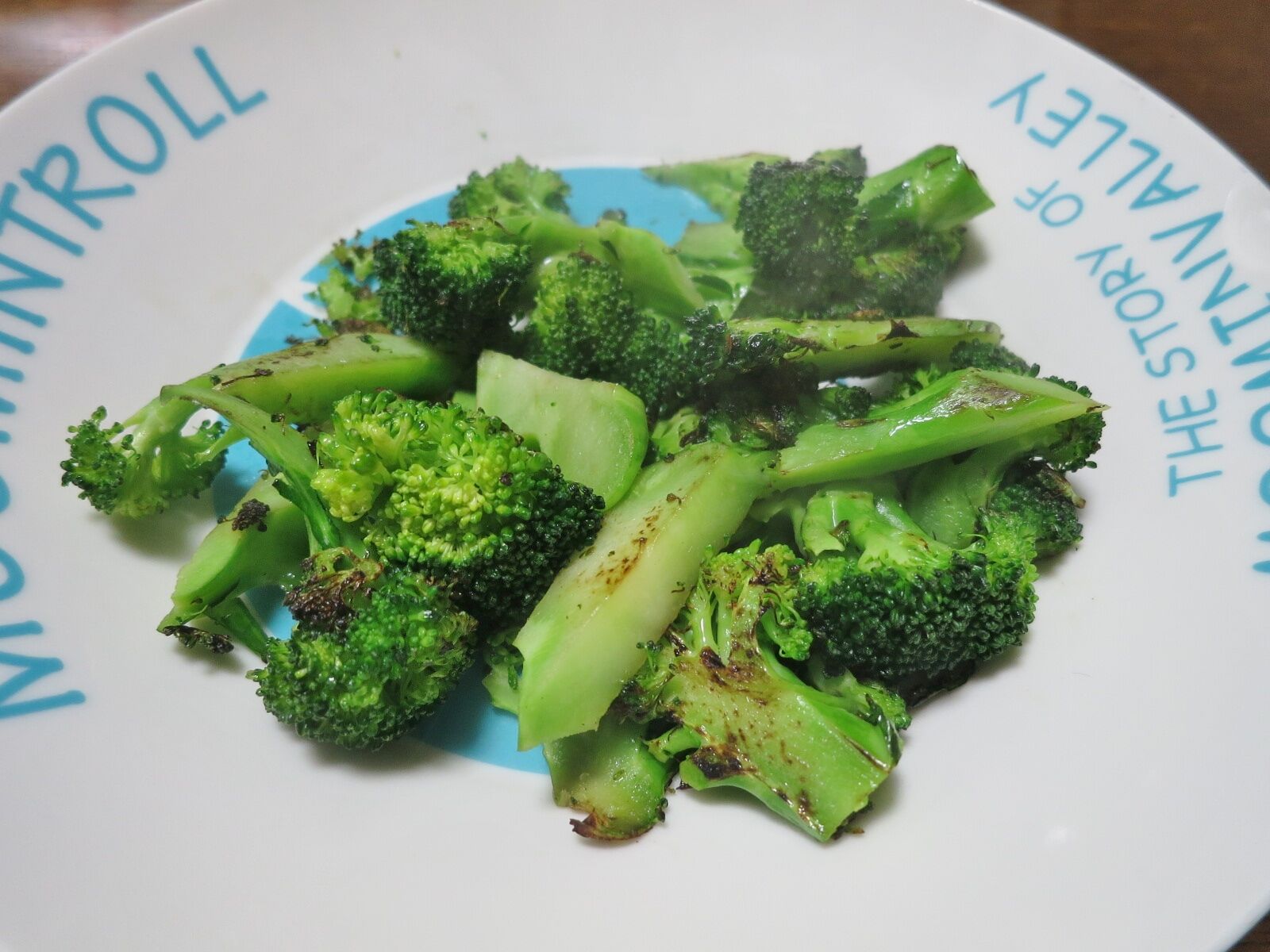 ブロッコリーを茹でずに、そのままフラーパンに油を引いて焦げ目がつくぐらいに香ばしく焼くだけ。他の味付けはいらない。