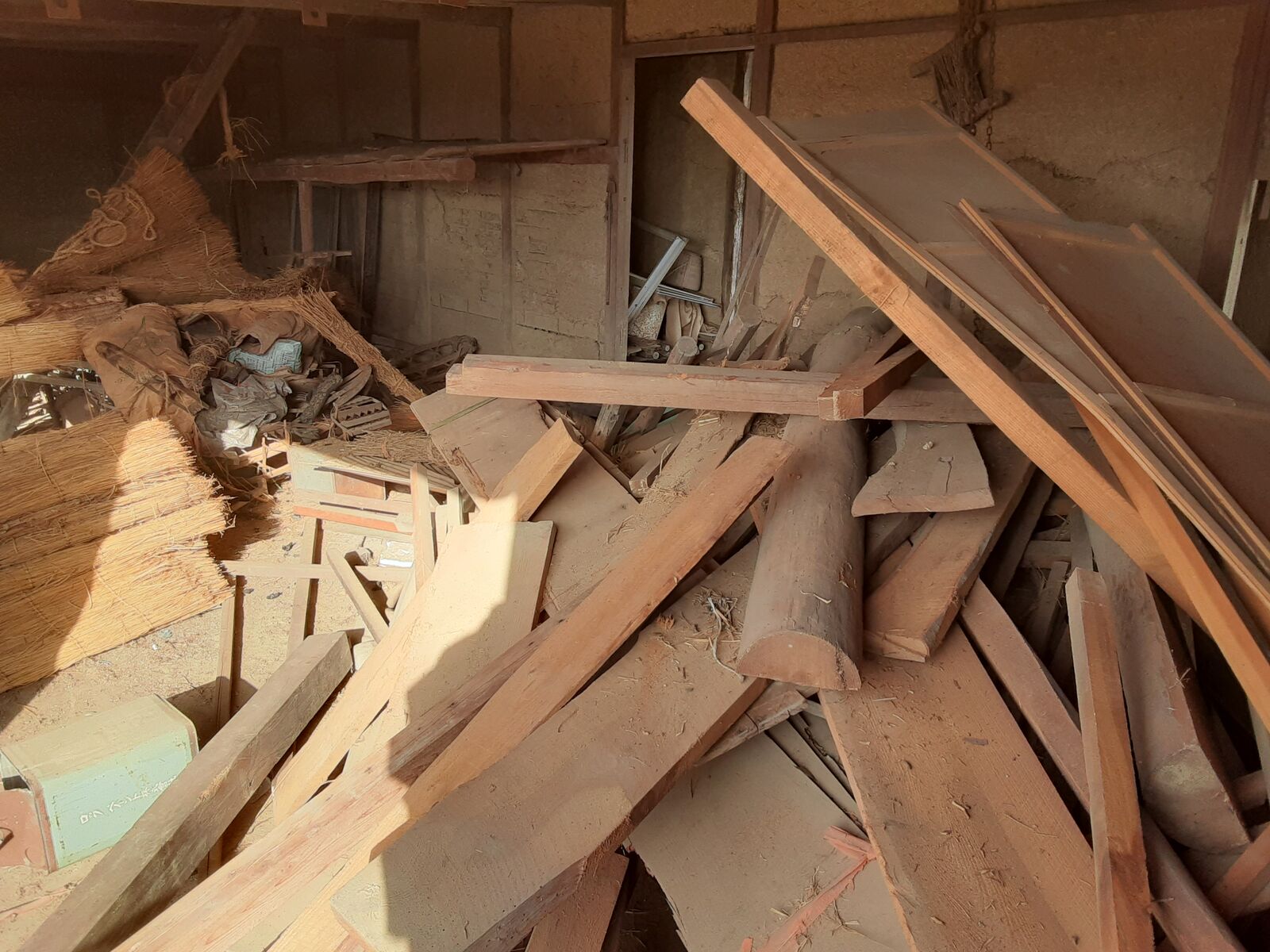 どうにか1階部分を全部きれいに搬出して、2階にある木材などのガラクタを放り落としたところ。まだいっぱいある。