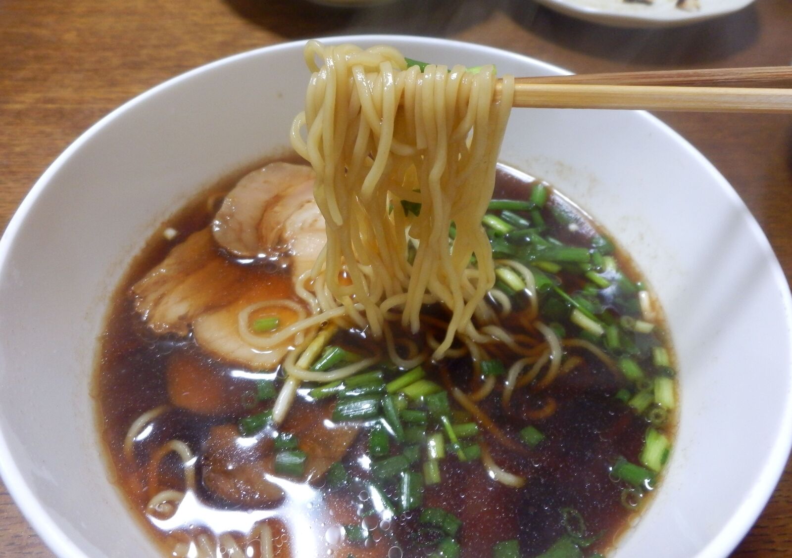 スープ真っ黒。牡蠣醤油の味がします。化学調味料は感じます。