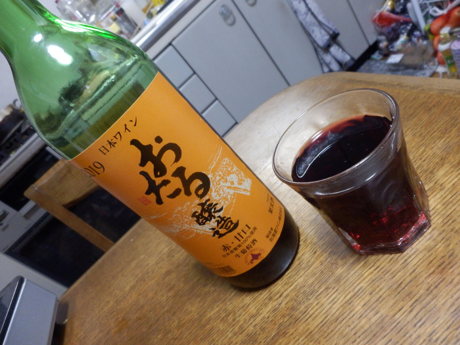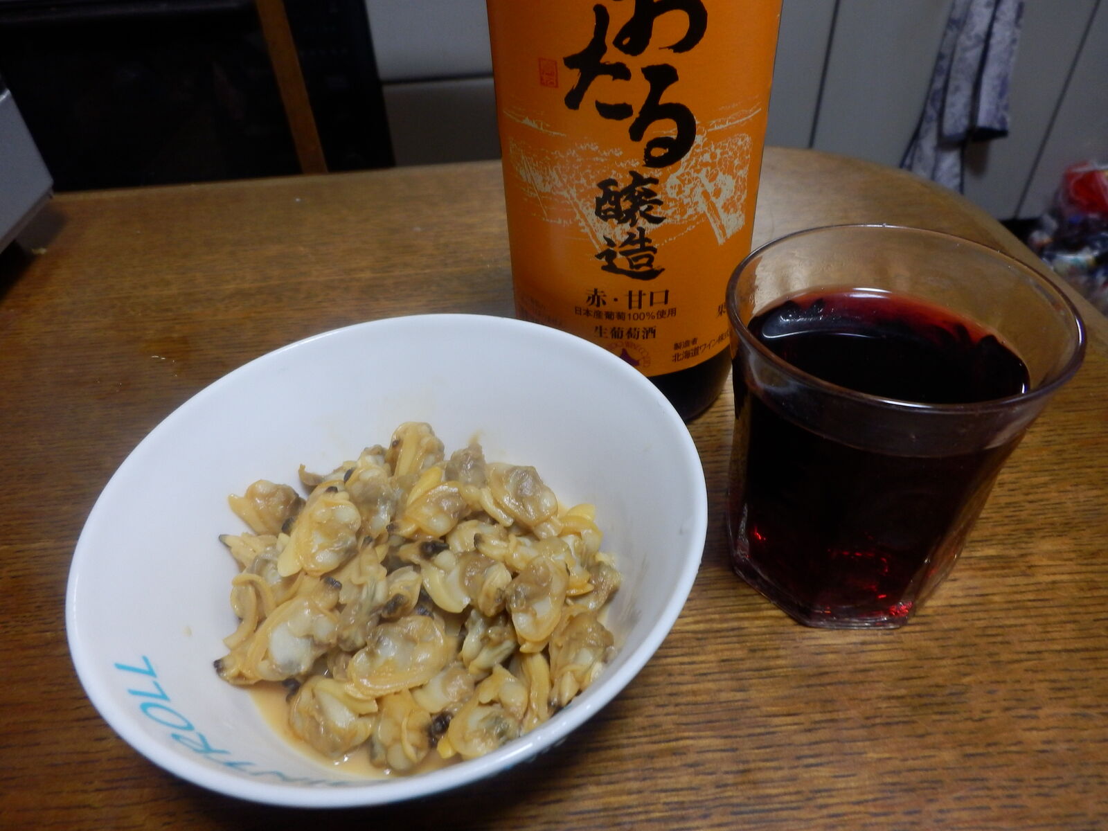 いやー、びっくりしました。うまい。ワインなどどれもたいして変わらんわと決め込んでいましたけど、国産ブドウの香りがよくフルーティで口当たりにすぐれ、酔い口がナチュラルで気持ちよい。今まで飲んでいた赤ワインを口に含んだ時の、独特の「痛み」が無い。