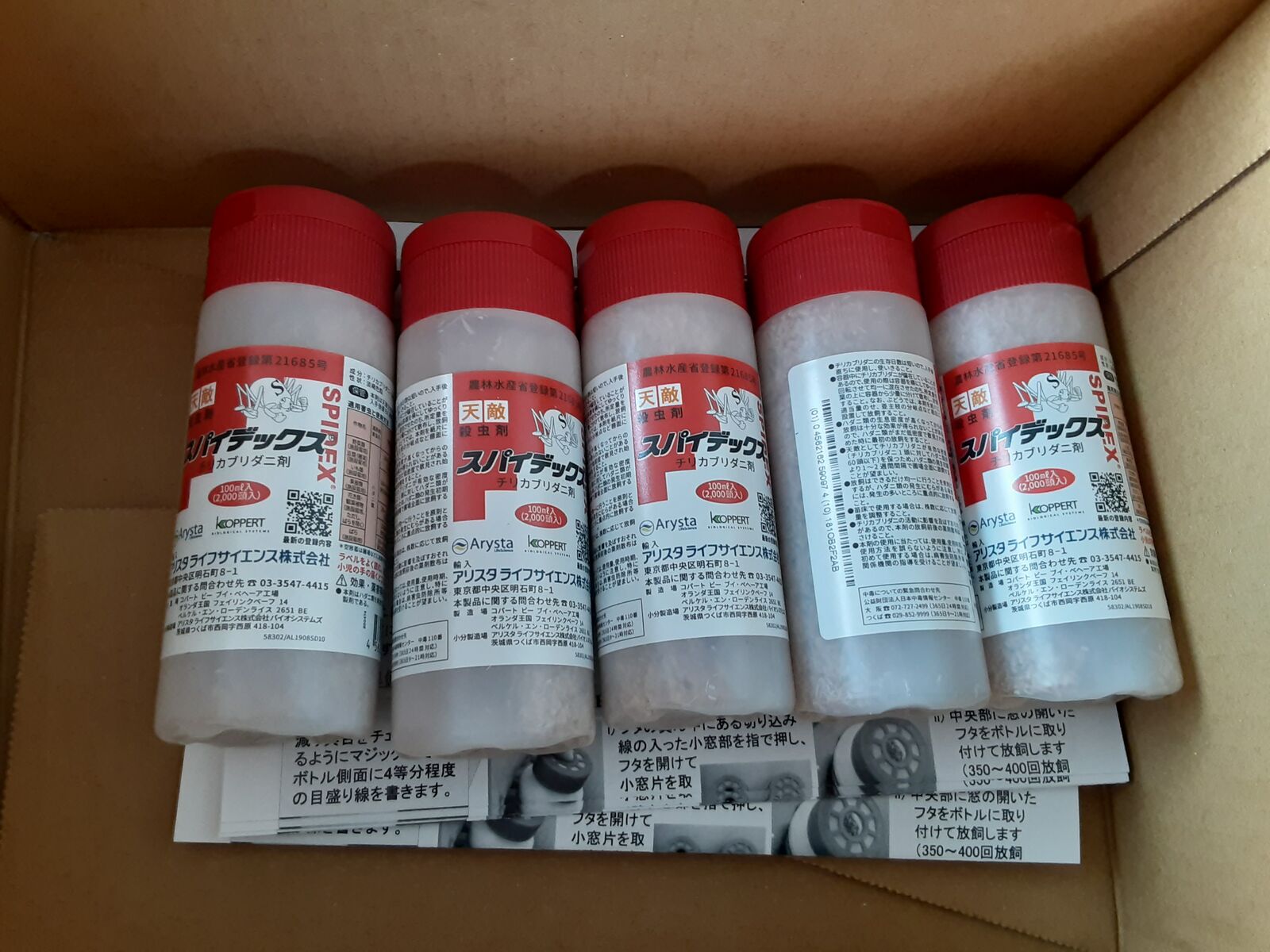 スパイデックスが届きました。ハダニの天敵チリカブリダニです。なかなか春が来ませんが、ハダニの繁殖が活発になる季節に向けて、今日再放飼です。10月に放飼した奴らがどれだけ生き残っているかわからないので。