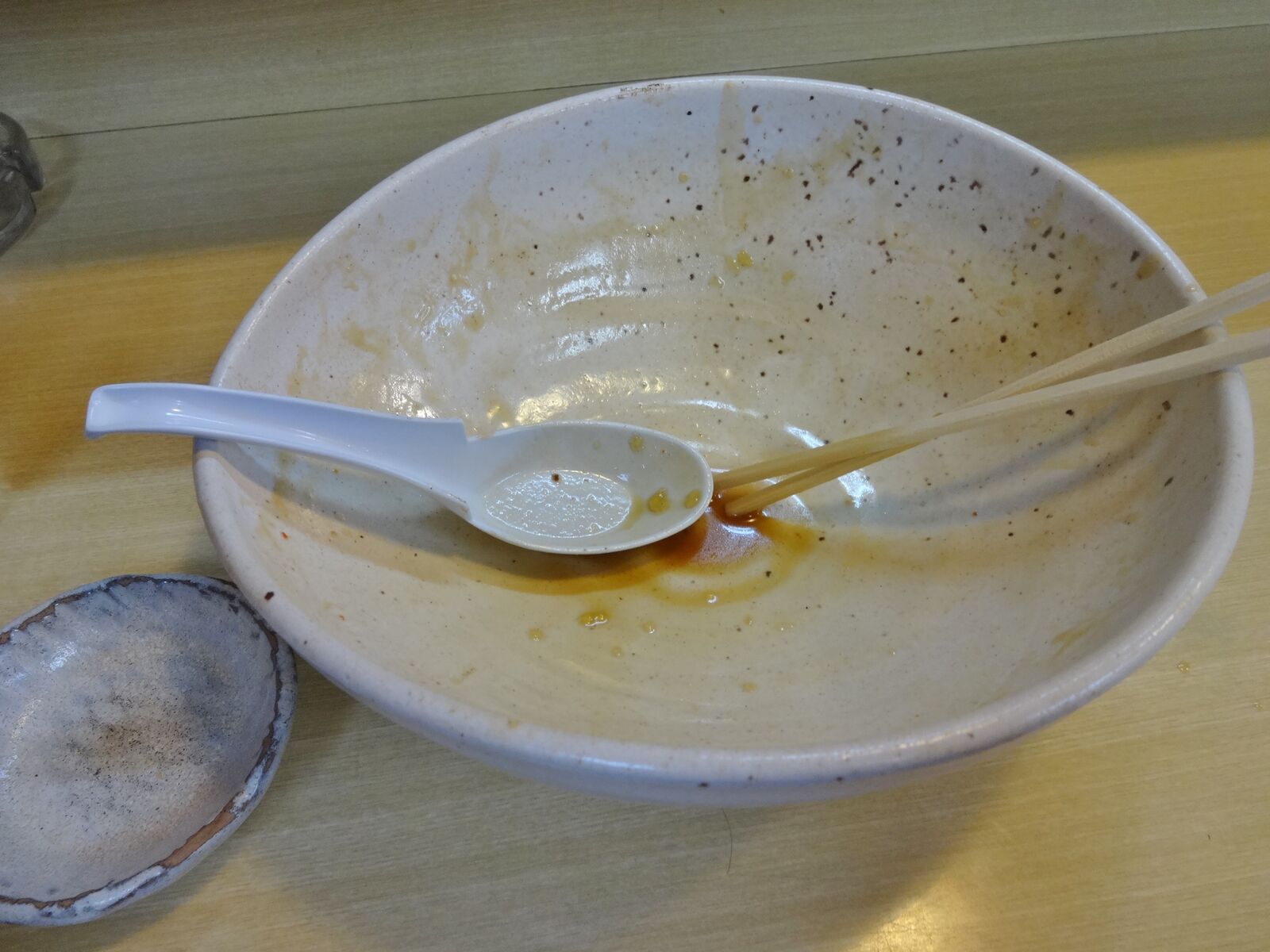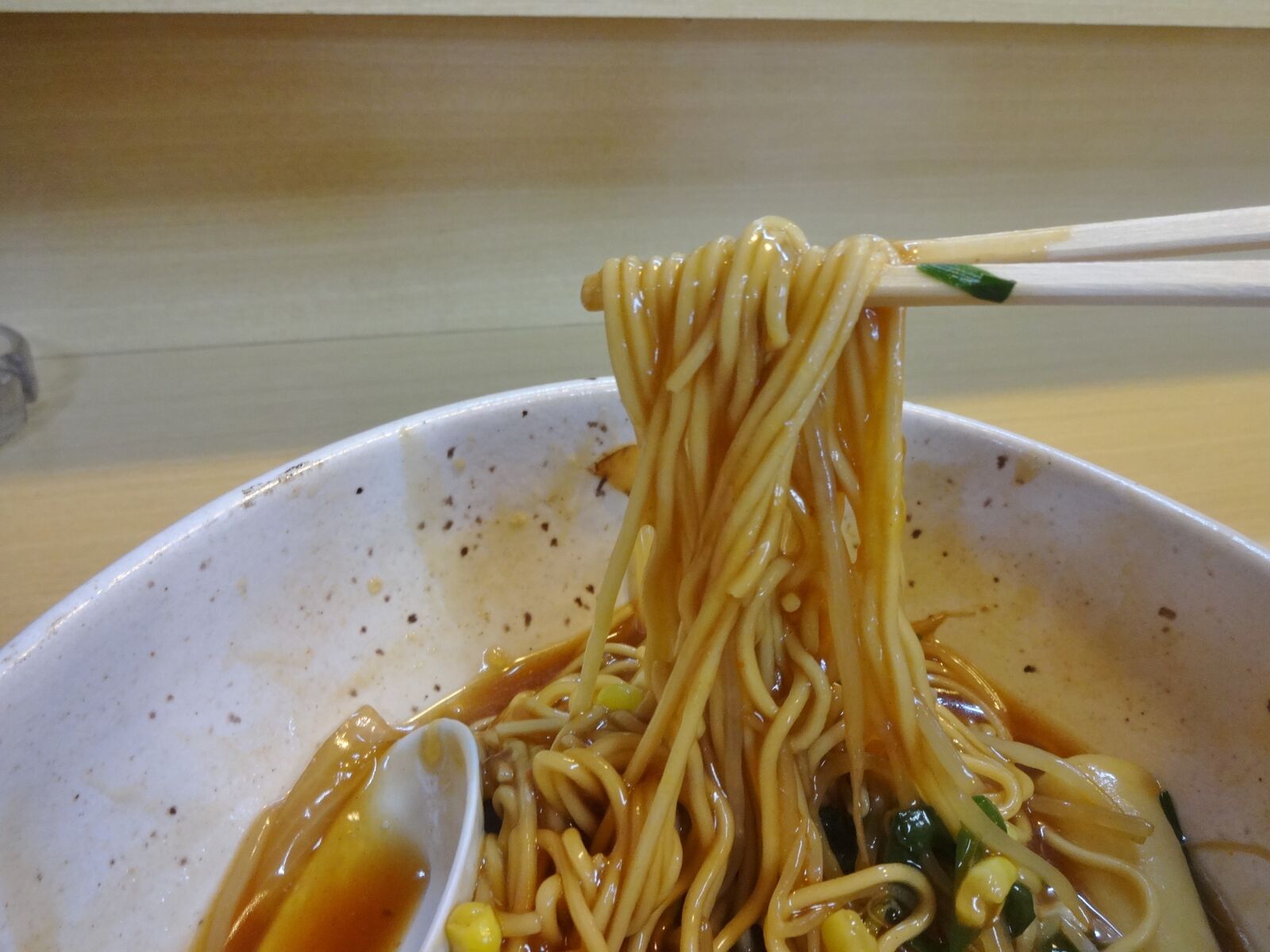 からこの麺は、標準で柔らかめなので、バリカタで注文。「バリカタ」の意味をお伝えするのに時間がかかりました。