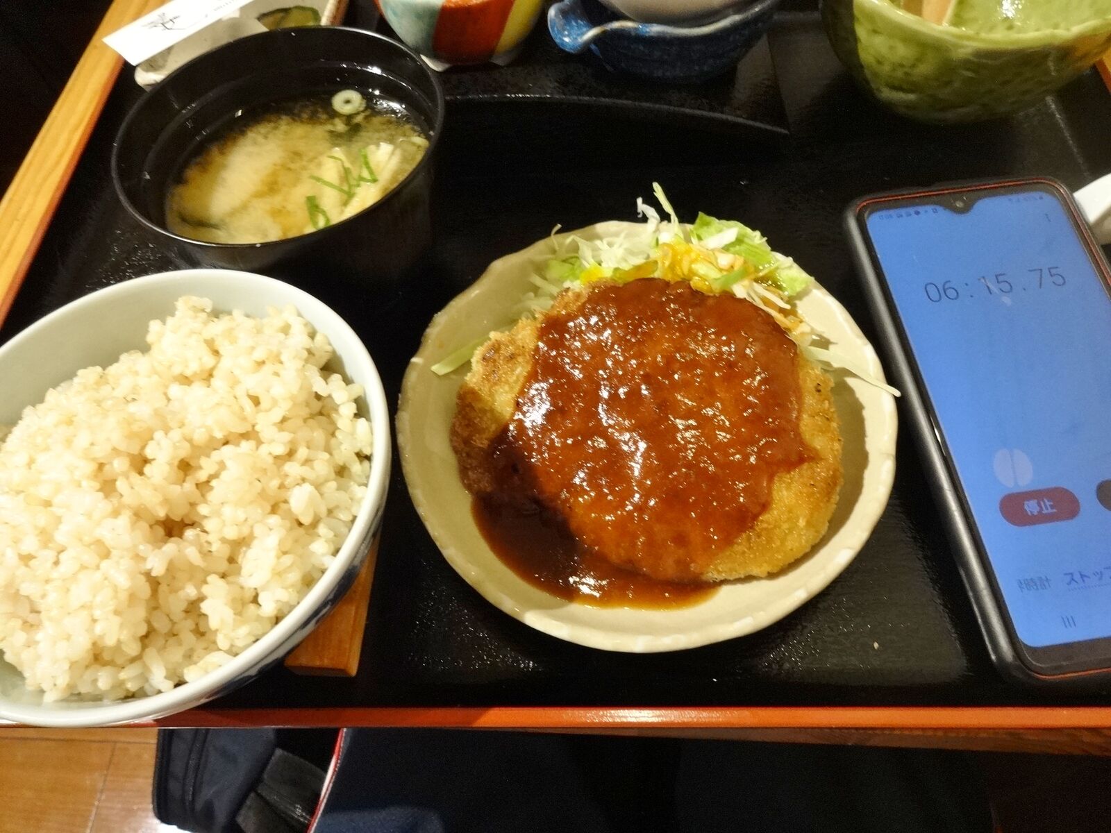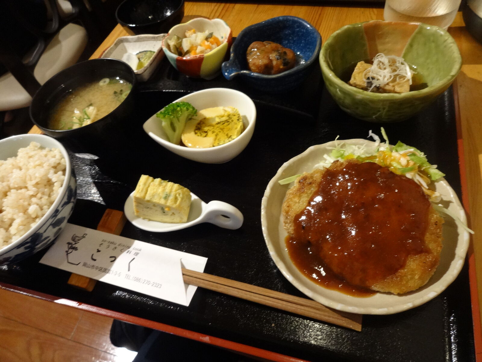 このミンチカツ、柔らかくて肉々しくない。豆腐でも入っているのかな。ソースは複雑で酸味があってとてもよい。
