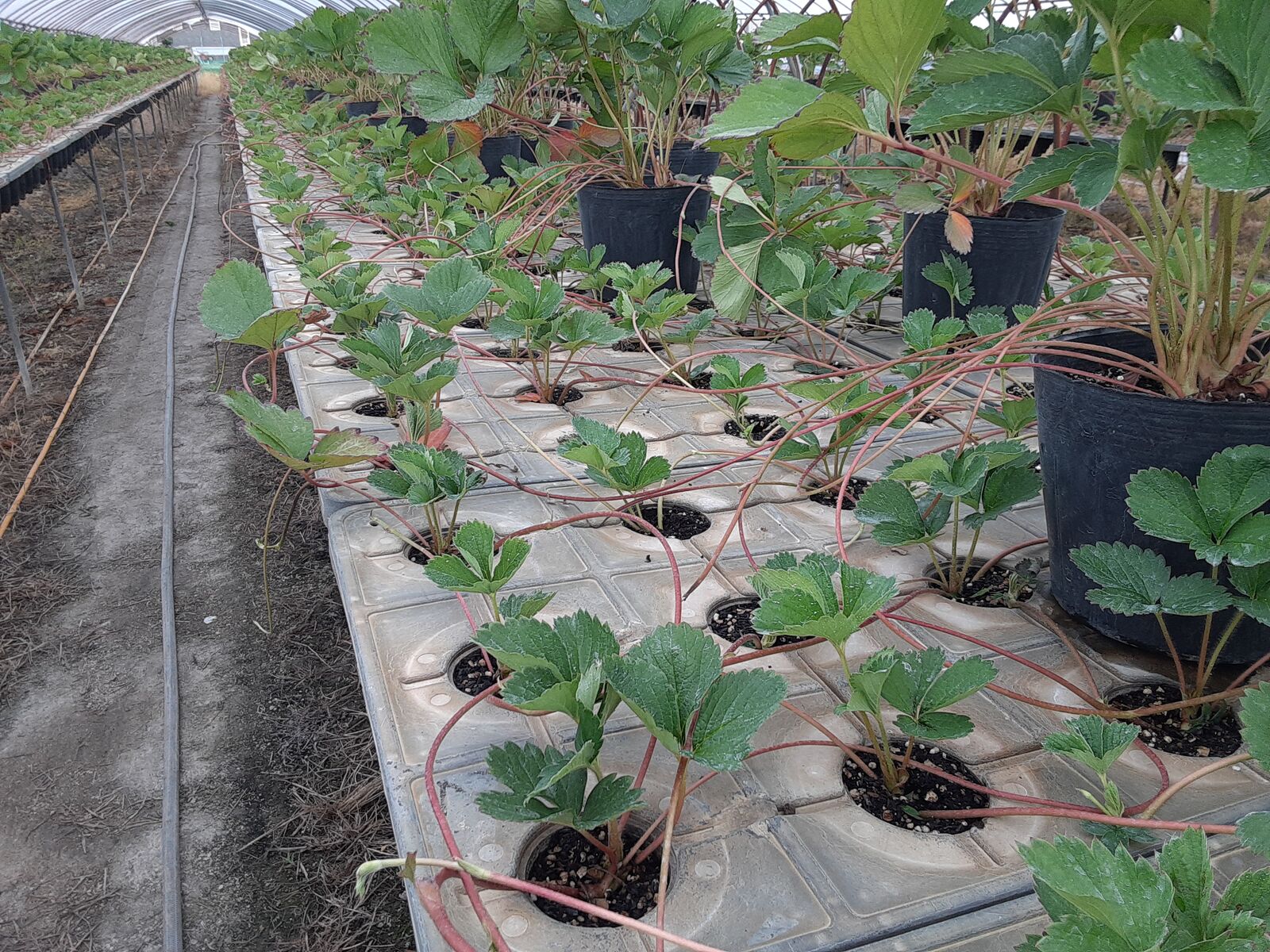 8280穴のうち8200ほど埋まったのではないでしょうか。本数的にはもう十分です。暑いので、ランナー先枯れ、チップバーン、枯死が多くて心配ではありますが、明日、予備的に行き場の無い子苗を100本ほど6cmポットに受けて終わりにします。