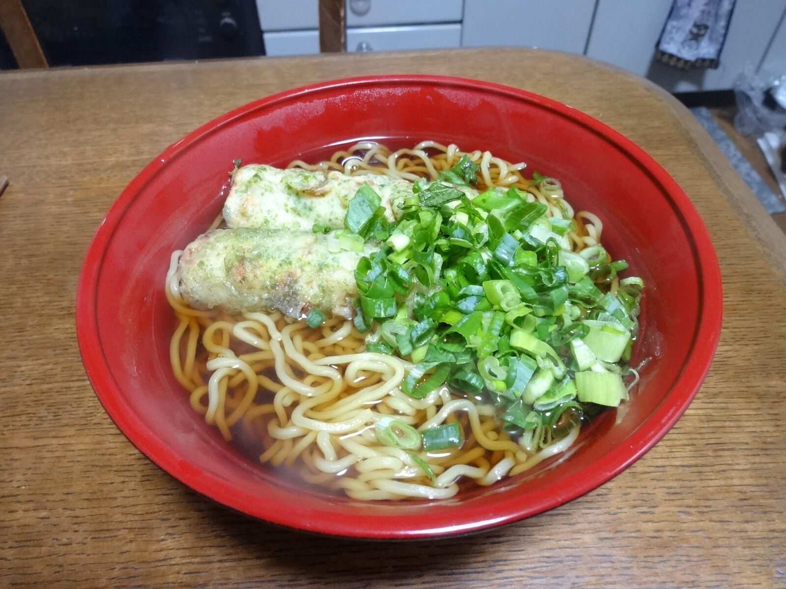 和風だしに中華麺。麺は菊水の縮れ。ちくわの磯辺天でも乗せますか。