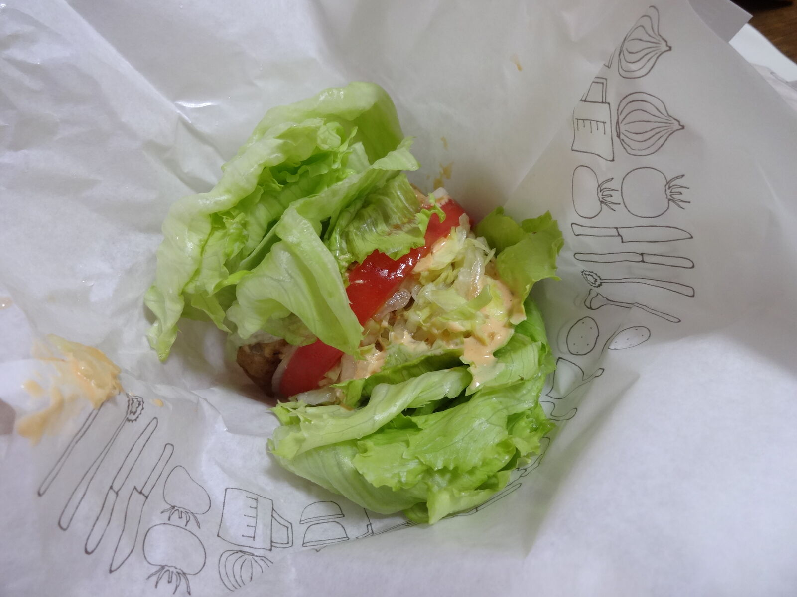 糖質11.0g、食物繊維3.0g。意外に食物繊維が少ない。糖質量を上げているのは、ソイパティのつなぎとドレッシングかな。