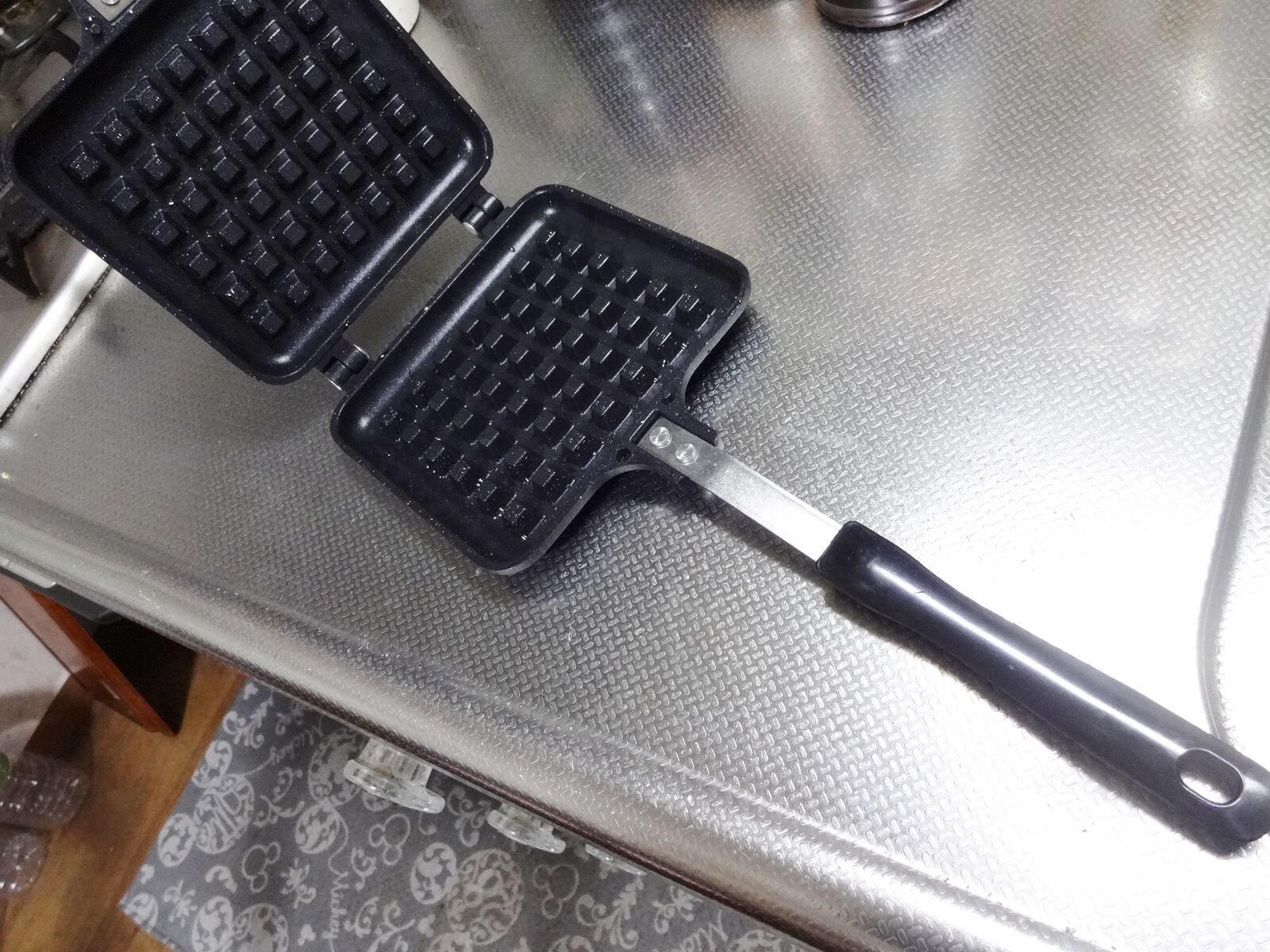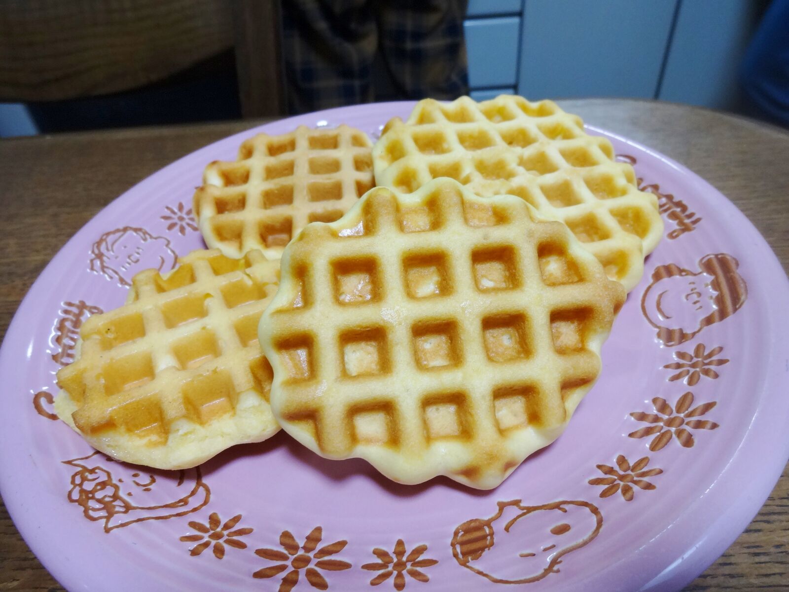 「百均で買った¥1000のワッフルメーカー」という、ちょっと文法的におかしい調理器具を使って、家人がワッフルを焼いてくれました。