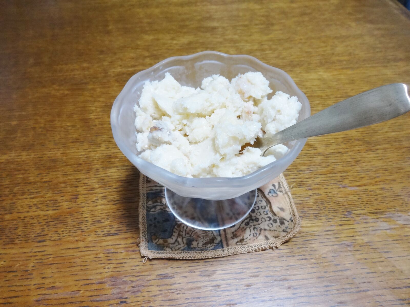 なんと!手作りアイス。材料は、牛乳、ハチミツ、おから、少々のグラノーラ、とか。