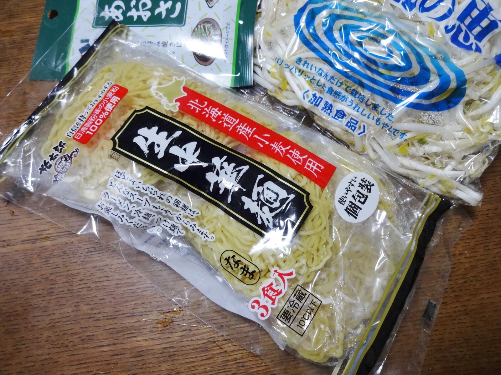 他に、キャベツ、もやし、青のり。急ぎ持ち帰って調理を始める。麺を茹でるためのお湯を沸かし、食材を切り始めた時、麺旅人は痛恨のミスに気づきました。豚肉を買い忘れた。冷蔵庫にも無い。たちどころに作戦は行き詰まり、打開策が練られました。