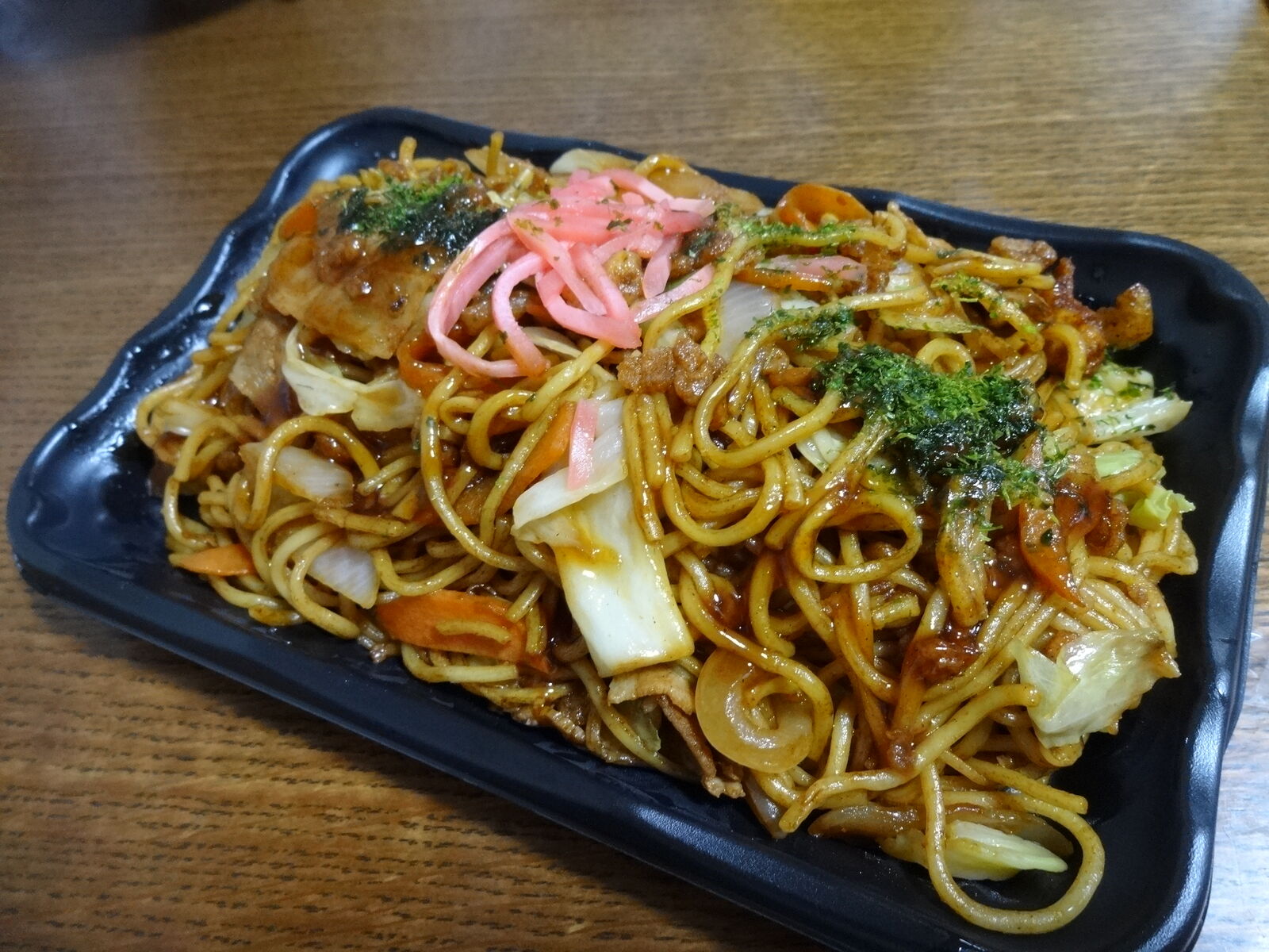茹で麺特有のしなやかさとコシが堂々の主役を張り、少しの縮れがソースとよく絡む。脇役の焼き加減も上々だ。ただ、青のりが・・・。