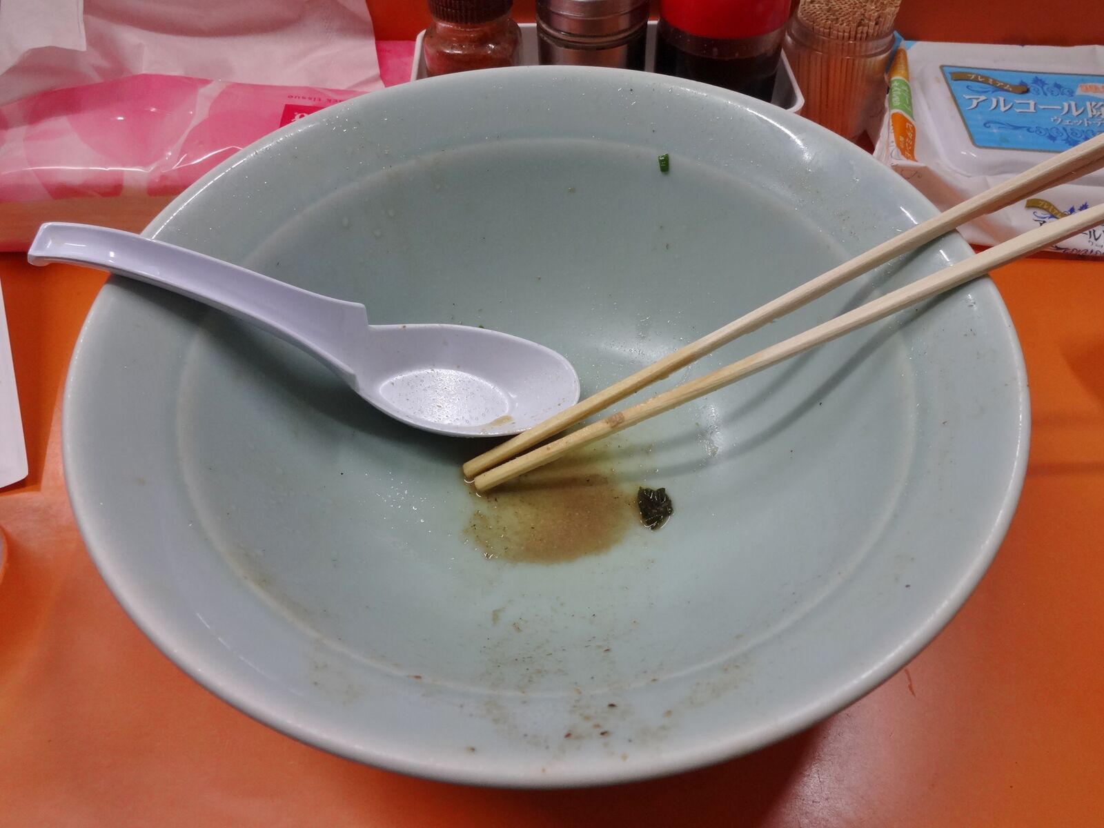 18:00を過ぎると、狭いカウンター席ではまかないきれないほど多数のお客さんが訪れます。麺旅人のプライドにかけて、大急ぎで胃袋にぶち込み、お勘定を済ませて店を出ました。