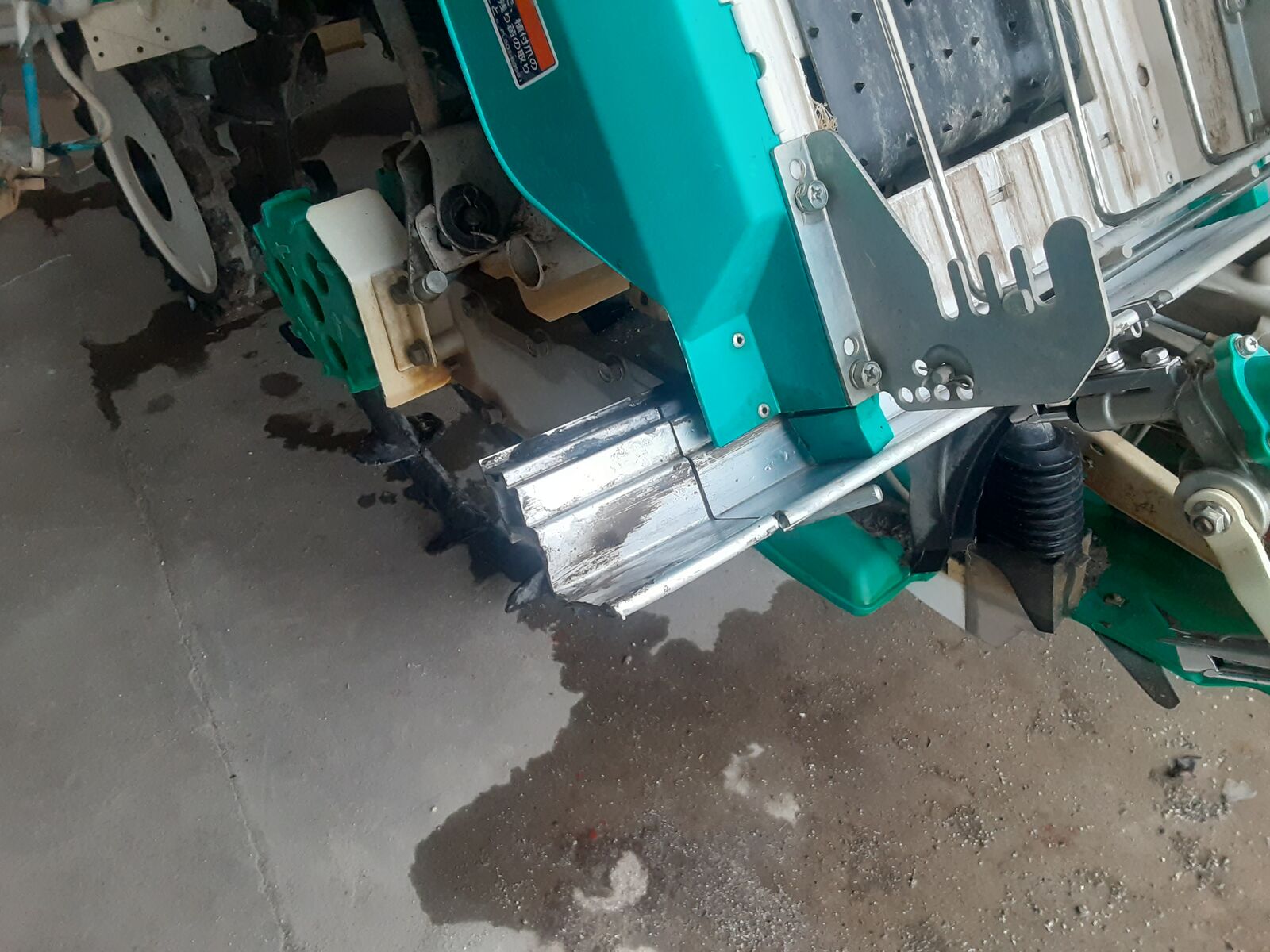 右旋回する時に、植え付け部のレールを擁壁にぶつけてへしゃいでしまい、プライヤーとハンマーで必死の延命措置をした結果、どうにか蘇生しました。