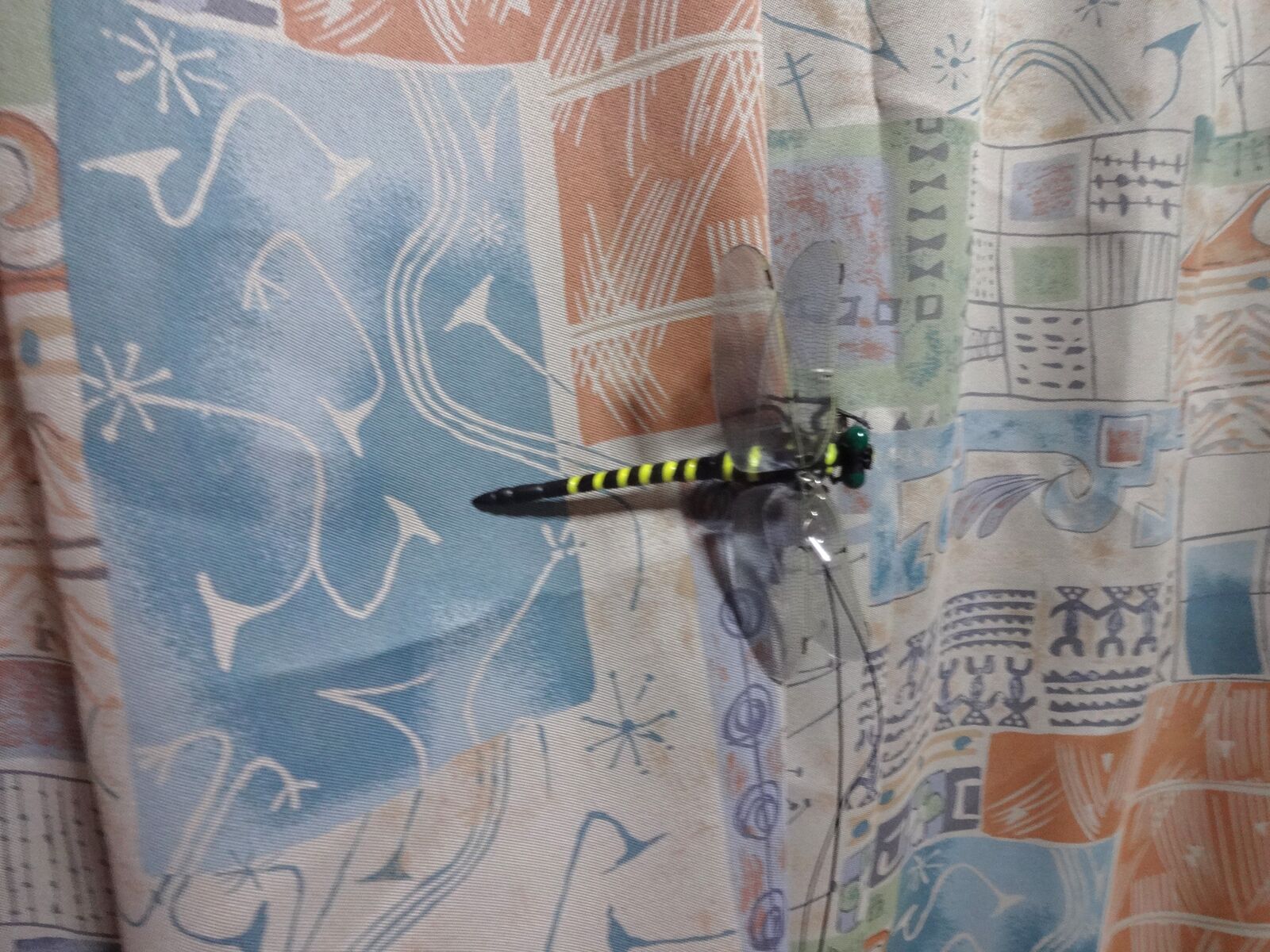 台所で蚊が飛んでいたので、食卓にトンボを置くと来なくなった。どかしたら、また現れた。