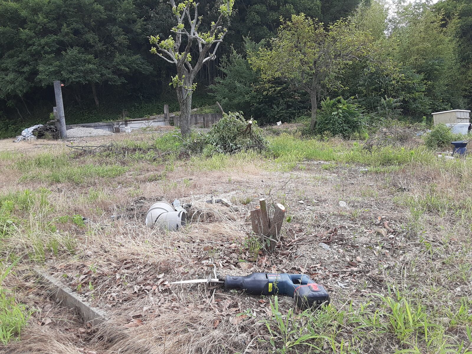 久々の登場。セーバーソー。こんなとこまでコードリールを引っ張って来れないので、バッテリータイプが出動。枝切用の刃を装着。まずは前線の阻止戦を突破。