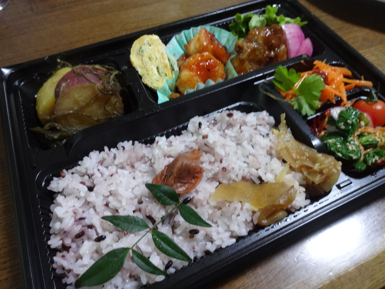 「お弁当」。今は、大きい方のお弁当(税込¥800)ともうちょっと豪華なお弁当(¥1000)の2本立てということなので、もちろん¥1000の方にしました。