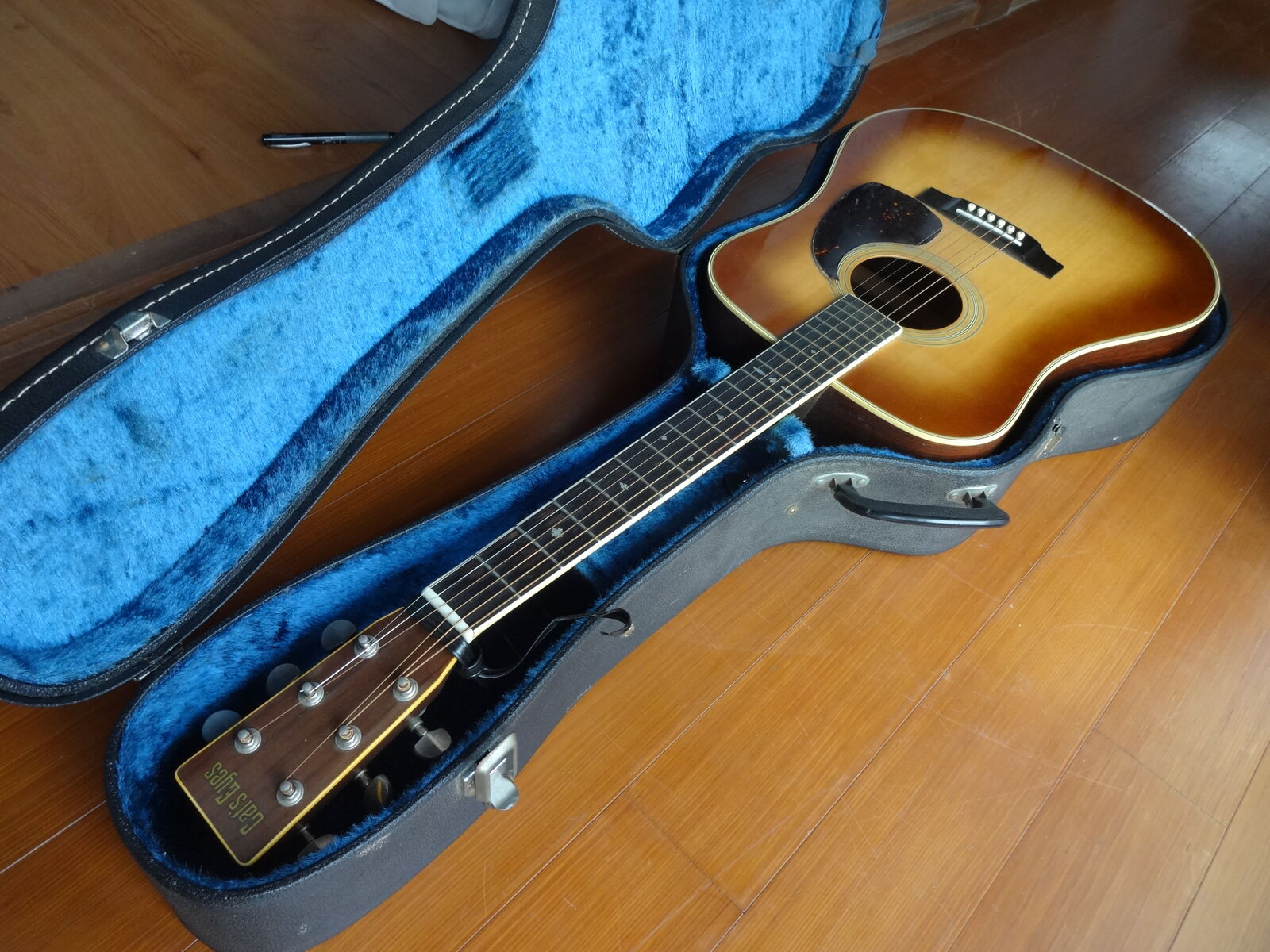 今でもめっちゃいい音を出します。ピックガードがはがれているだけで、他は傷打痕無く、フレットの減りもほとんどありません(あんまり使っていないんとちゃうか)。ハードケース付き。ヴィンテージアコースティックギターをお探しの方、この機会にいかがでしょうか。